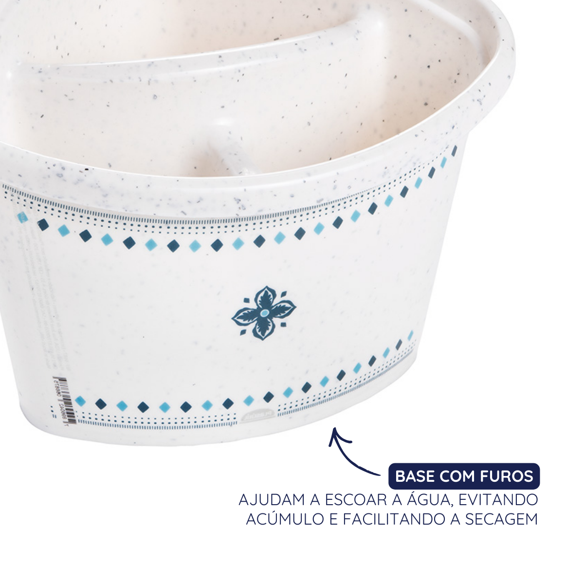 - Furos no fundo que evitam acúmulo de água