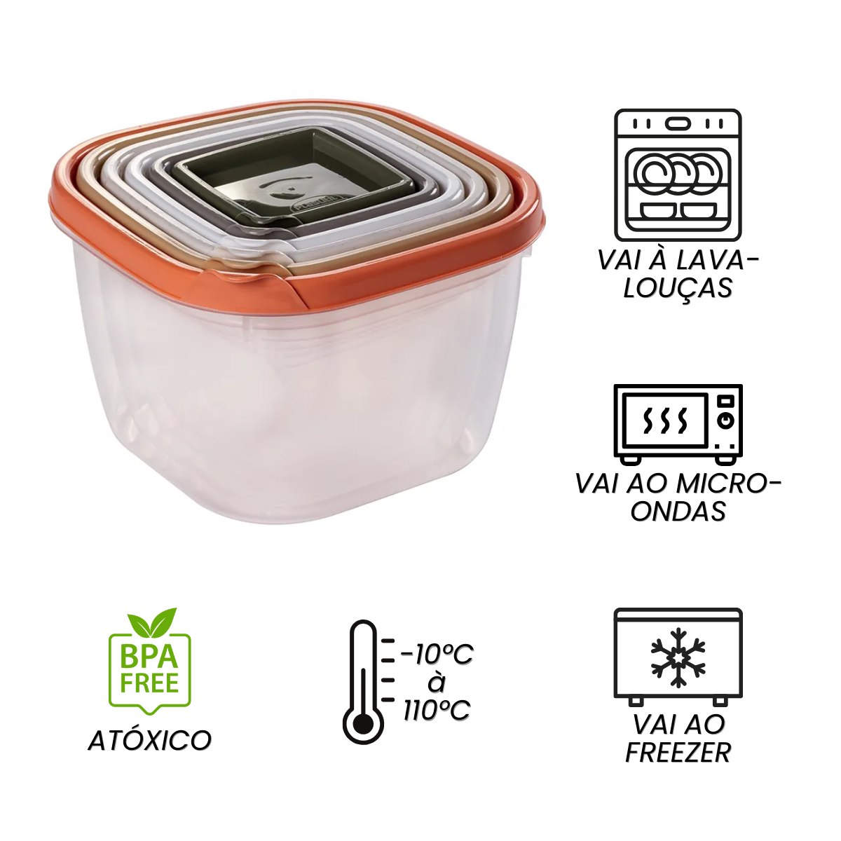 - Uso Versátil: Compatíveis com freezer, micro-ondas e lava-louças.