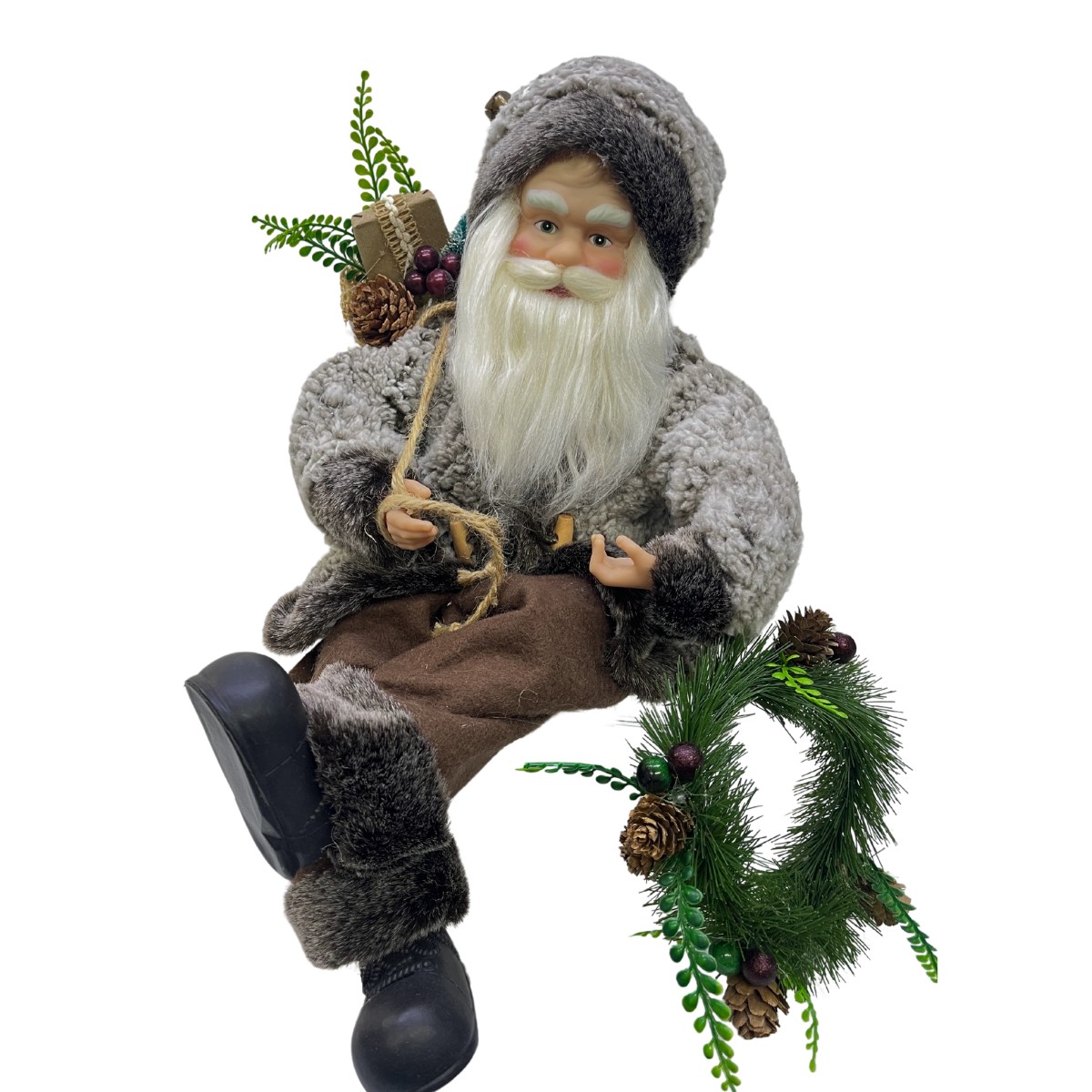 Papai Noel Lenhador Sentado Com Saco de Presente e Guirlanda - Tok da Casa