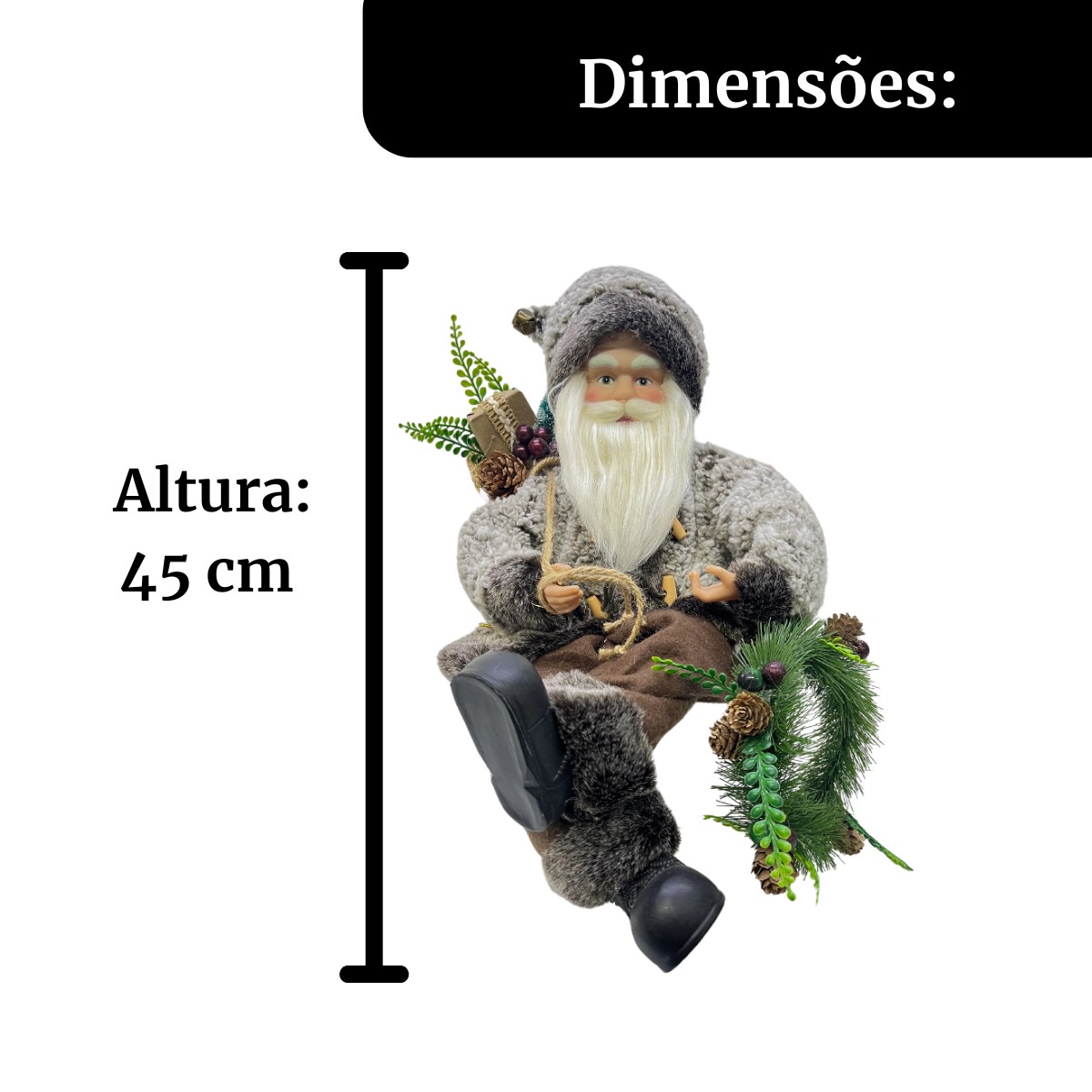 Tamanho: 45 cm de altura, ideal para exibição em prateleiras, mesas ou ao lado da árvore de Natal.