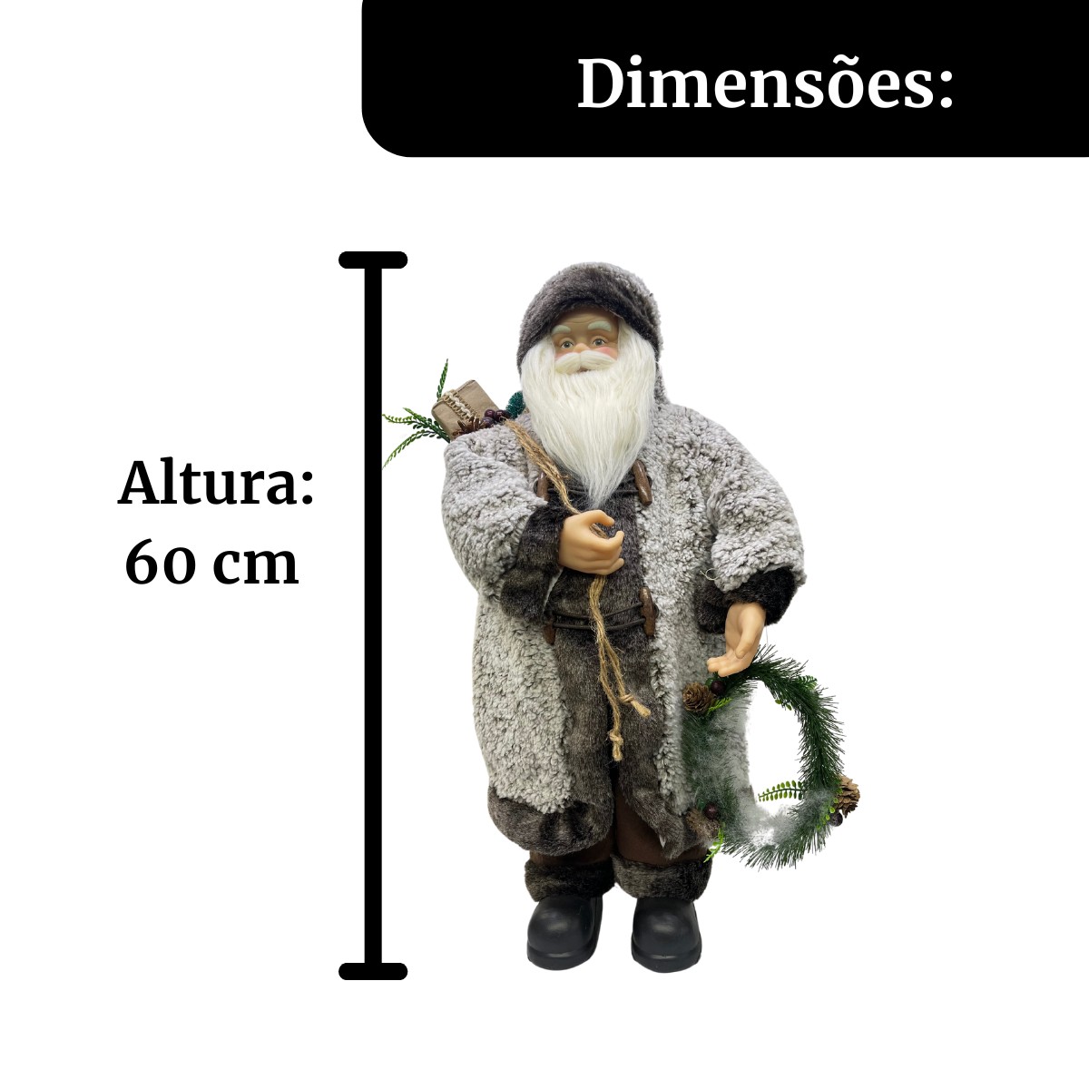 Tamanho: 60 cm de altura, ideal para ser colocado em diversos locais da casa, como ao lado da árvore de Natal, em prateleiras ou mesas.