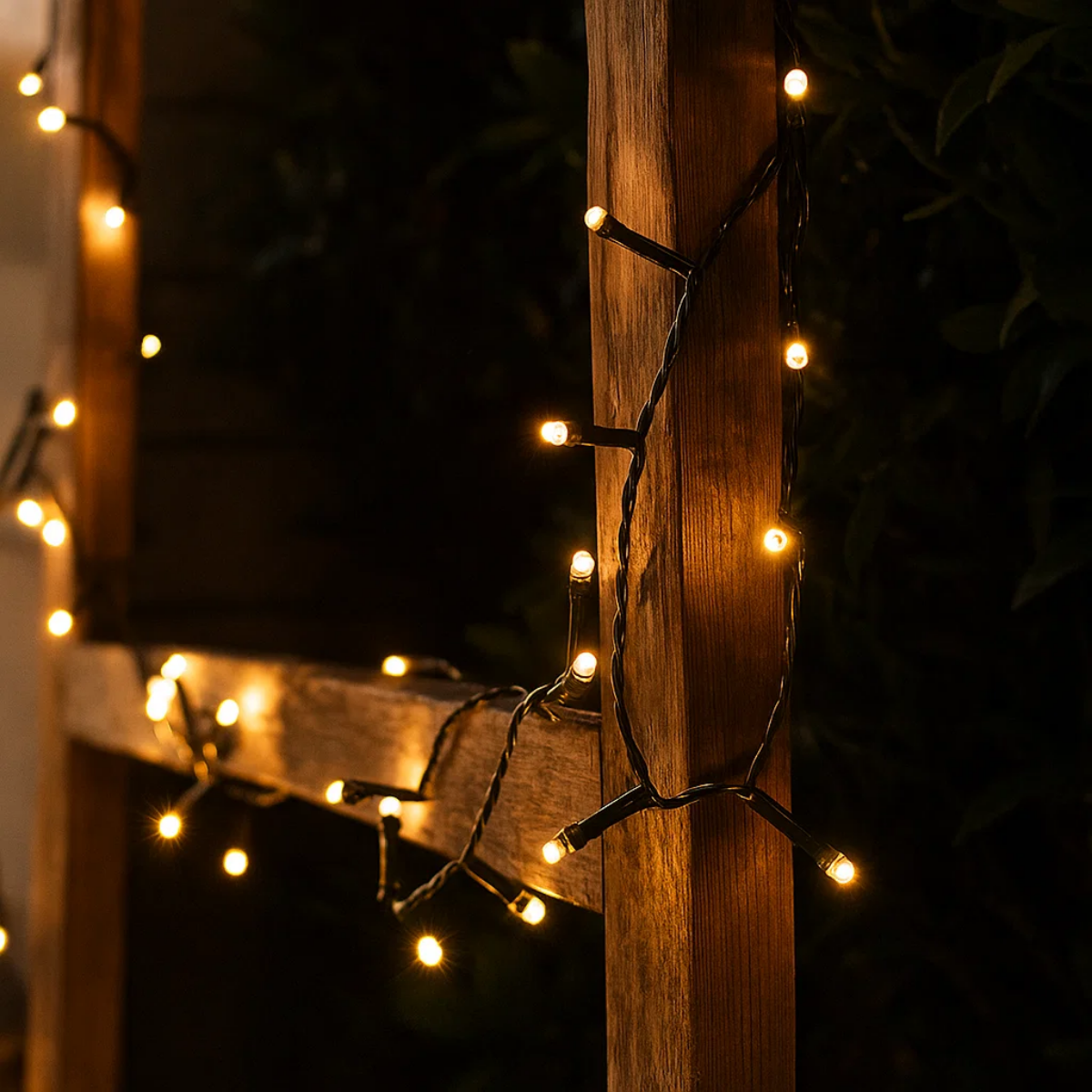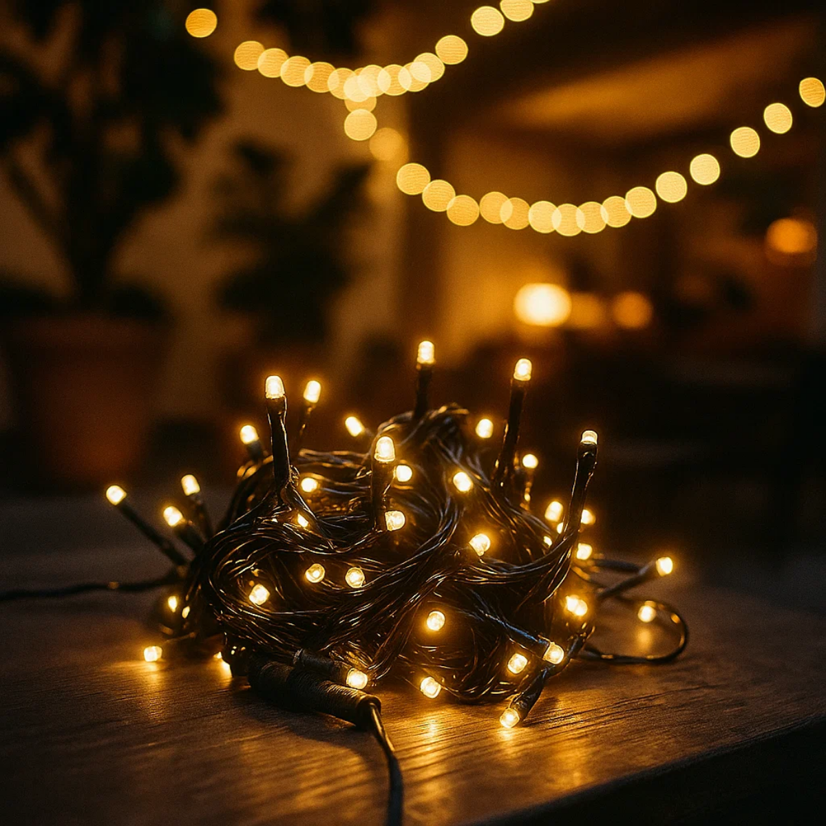 Transforme sua decoração com o cordão de 100 LEDs fixos em branco quente, ideal para criar ambientes aconchegantes e iluminados. Com 10 metros de comprimento e resistência à água, é a escolha perfeita para árvores de Natal, janelas, varandas e grandes áreas externas.