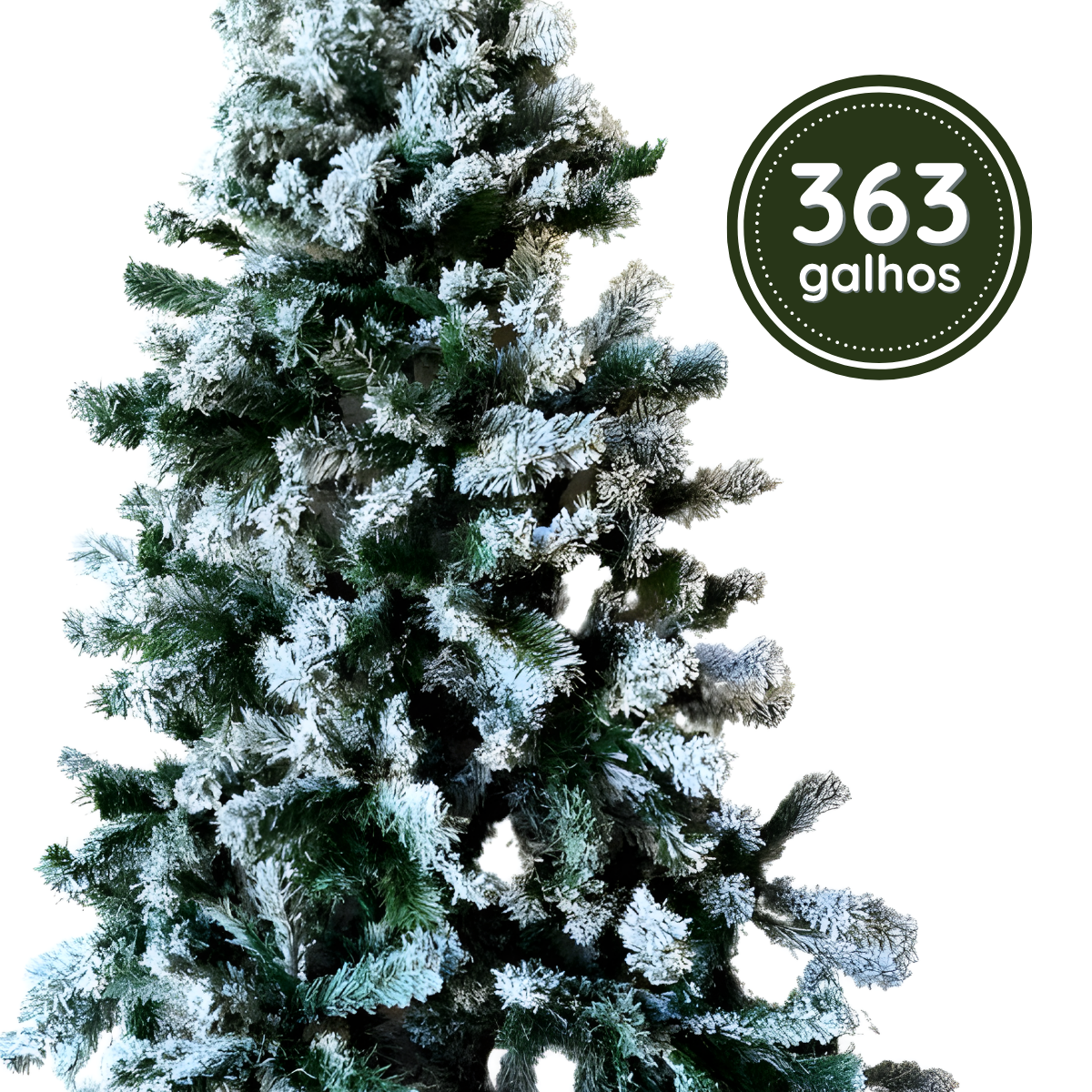 - 363 galhos cheios e flexíveis, com acabamento nevado que proporciona um visual natural e encantador;
