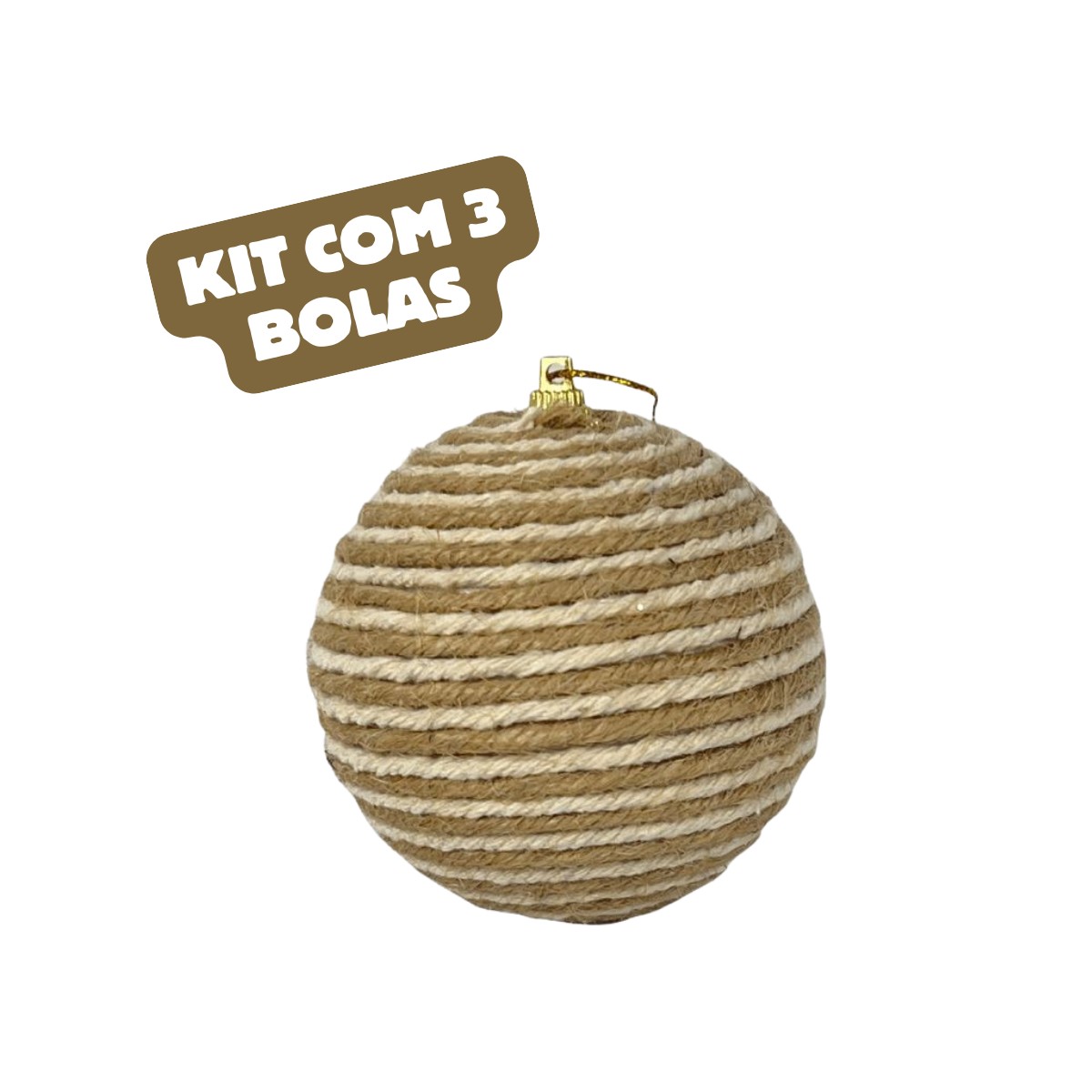 Kit 3 Bolas de Natal Cru 8 cm - Enfeite Decorativo Natalino