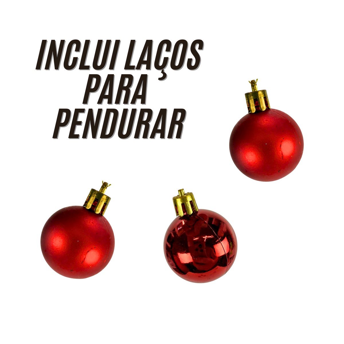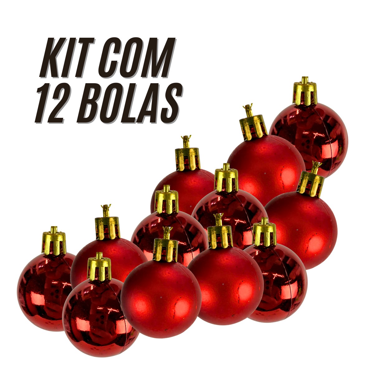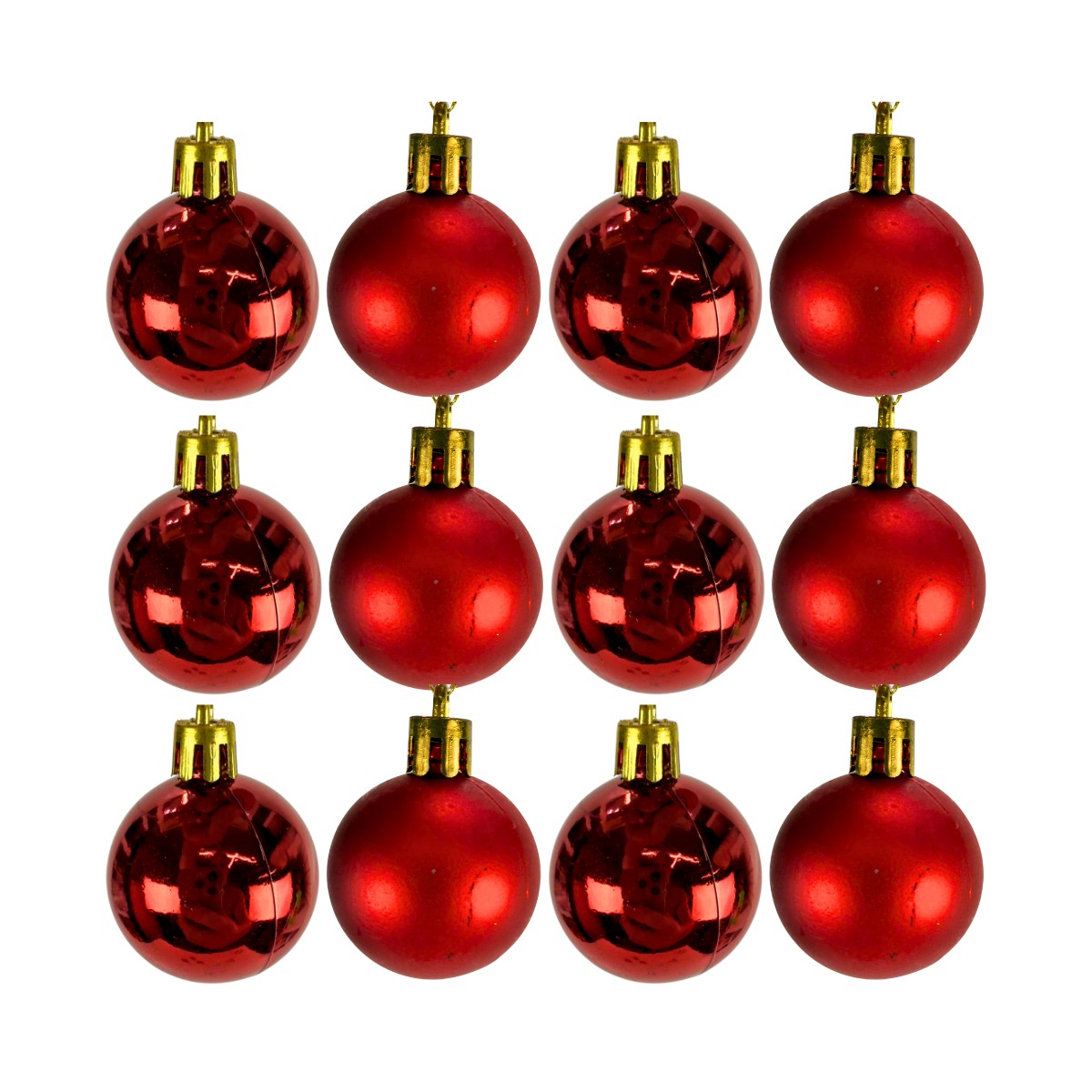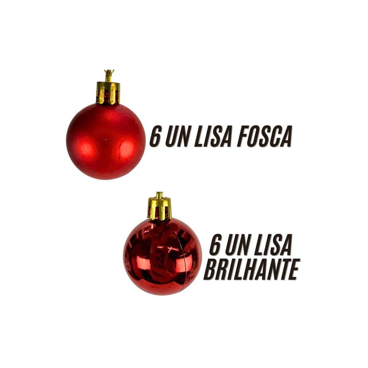 Kit 12 Bolas de Natal Vermelhas Lisa Mista 4cm - Enfeite para Árvore