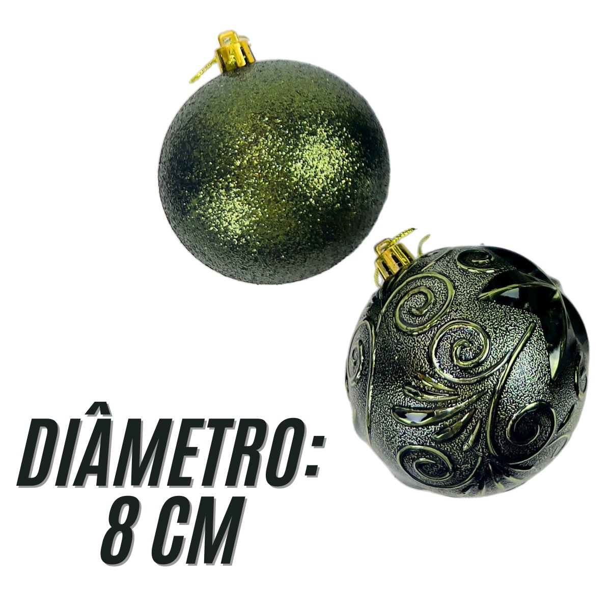 Dê um toque especial à sua árvore com o Kit 6 Bolas de Natal Mista 8cm, em um sofisticado tom de verde. Com 8 cm de diâmetro, as bolas têm o tamanho ideal para destacar-se em árvores de diferentes portes. Este conjunto inclui bolas lisas, com glitter e decoradas, criando um visual elegante e harmonioso. A cor verde remete à natureza e combina perfeitamente com tons clássicos de Natal, como dourado e vermelho. Feitas em poliestireno, as bolas são duráveis e seguras de manusear. Com este kit, sua decoração ganhará um toque de elegância e aconchego, celebrando o Natal com muito estilo e brilho!