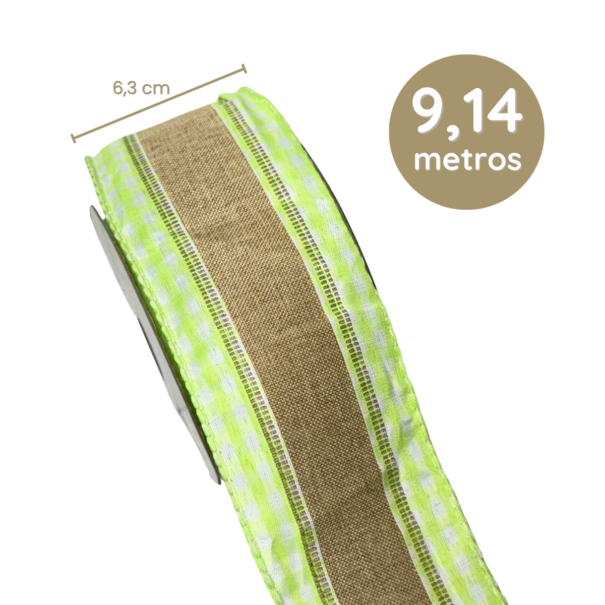 Fita Aramada Rústica Verde Xadrez com Faixa Juta 9,14m x 6,3cm – Charme natural para suas decorações