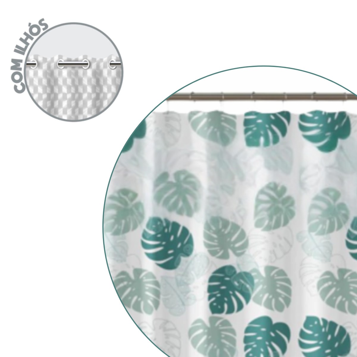 Com estampas de folhas e medidas de 1,80 m x 1,38 m, ela se destaca pela beleza e funcionalidade, acompanhada de 09 argolas para uma instalação prática. Transforme seu banheiro com a elegância e praticidade da Cortina Box Fine Folhas.