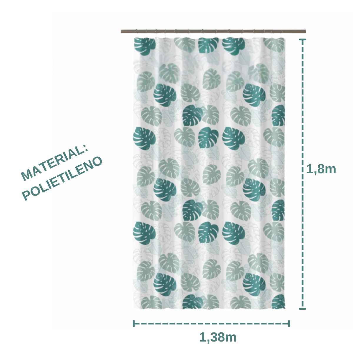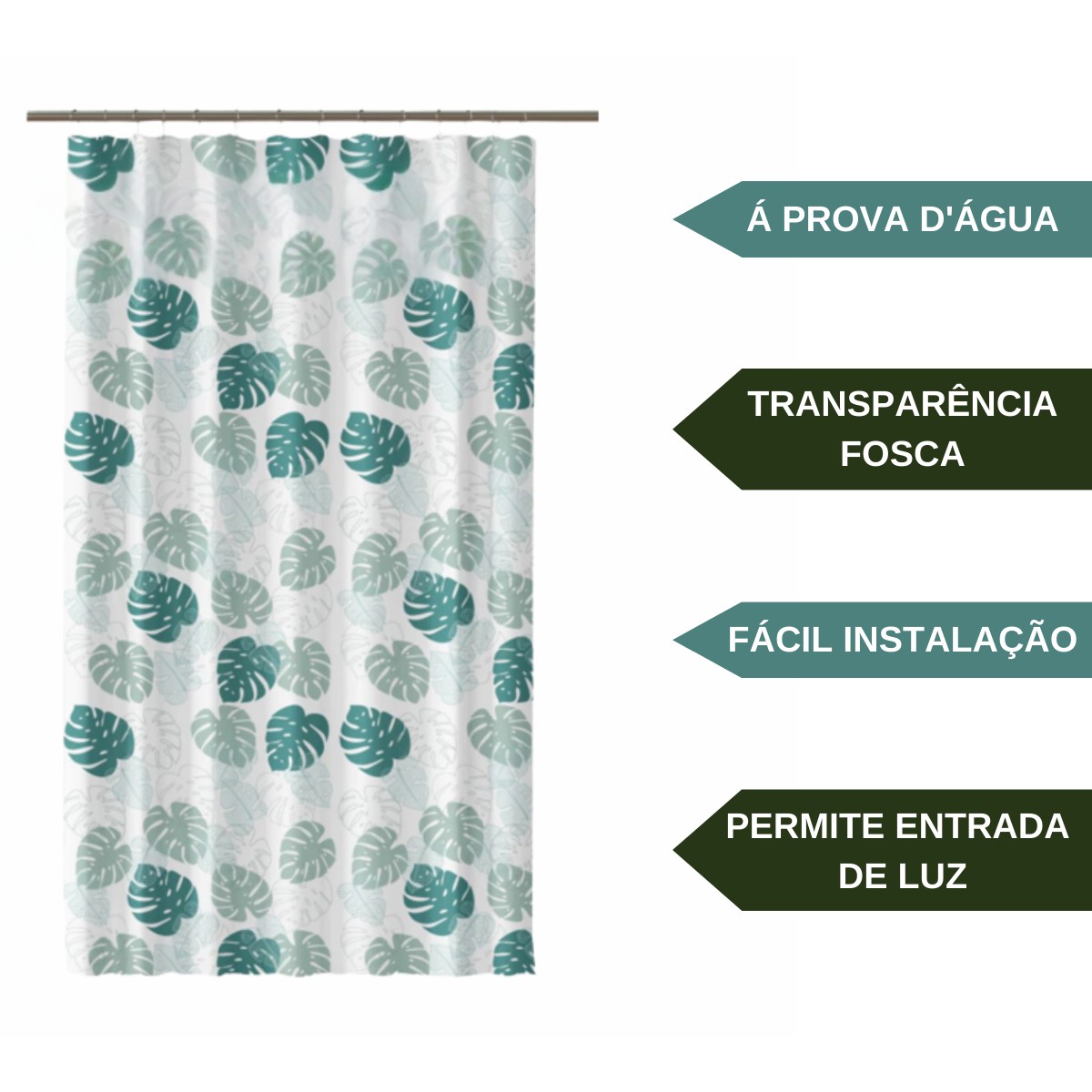 Cortina Box de Banheiro Impermeável 1,80 x 1,38 Fine Folhas