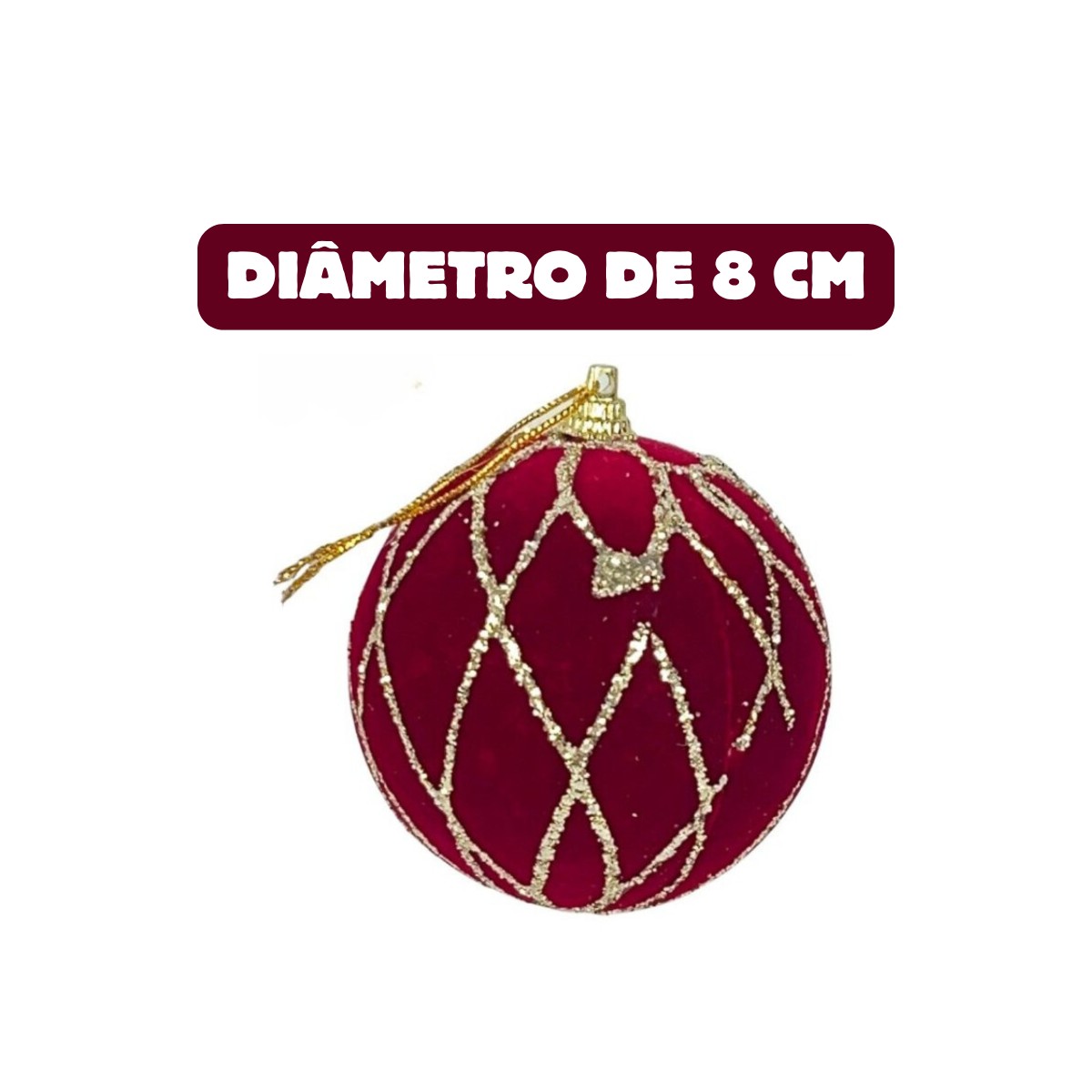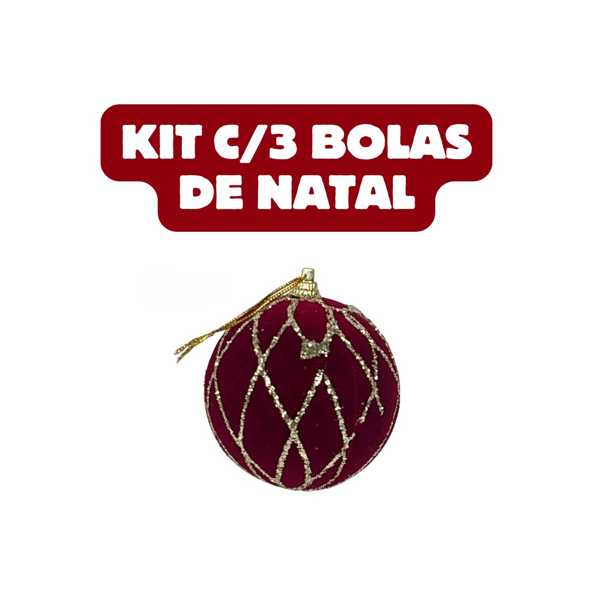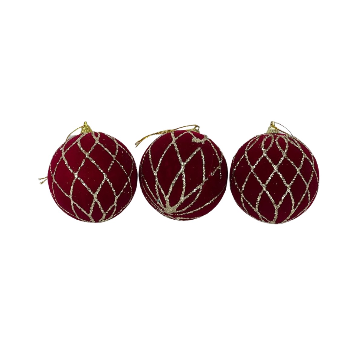 Kit com 3 Bolas Decoradas Vermelhas de 8 cm para Árvore de Natal
