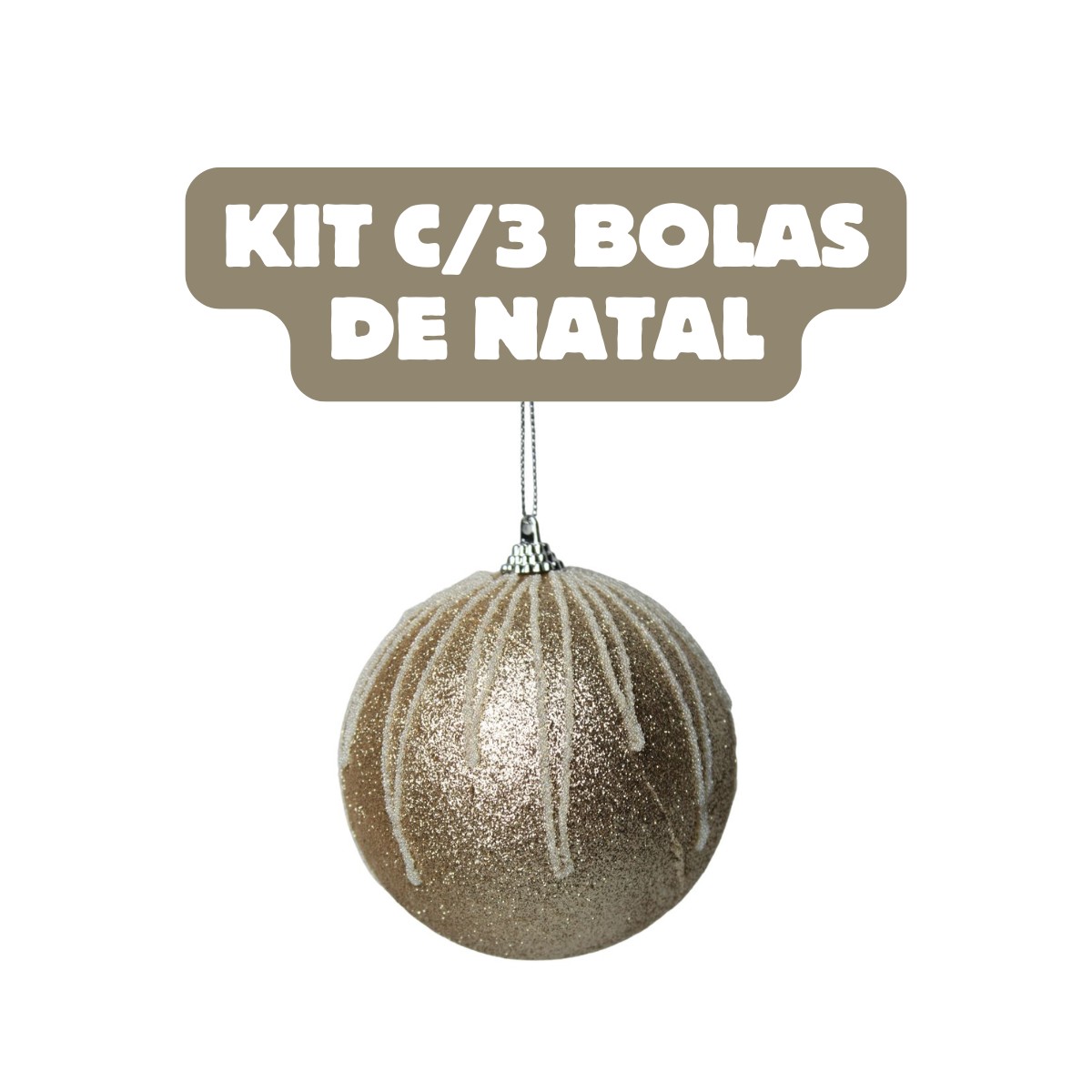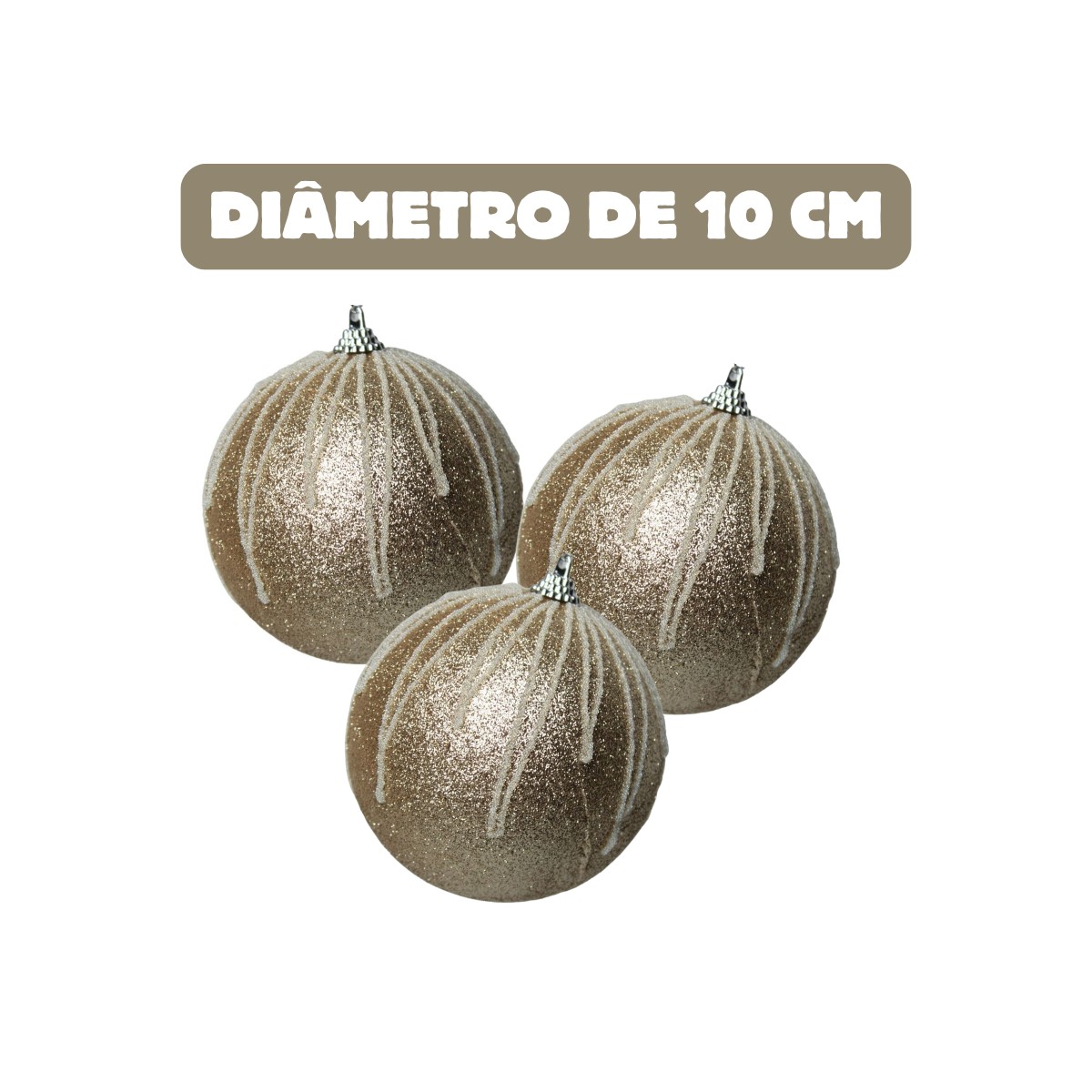 Kit com 3 Bolas de Natal Champanhe 10 cm - Enfeite para Árvore Natalina