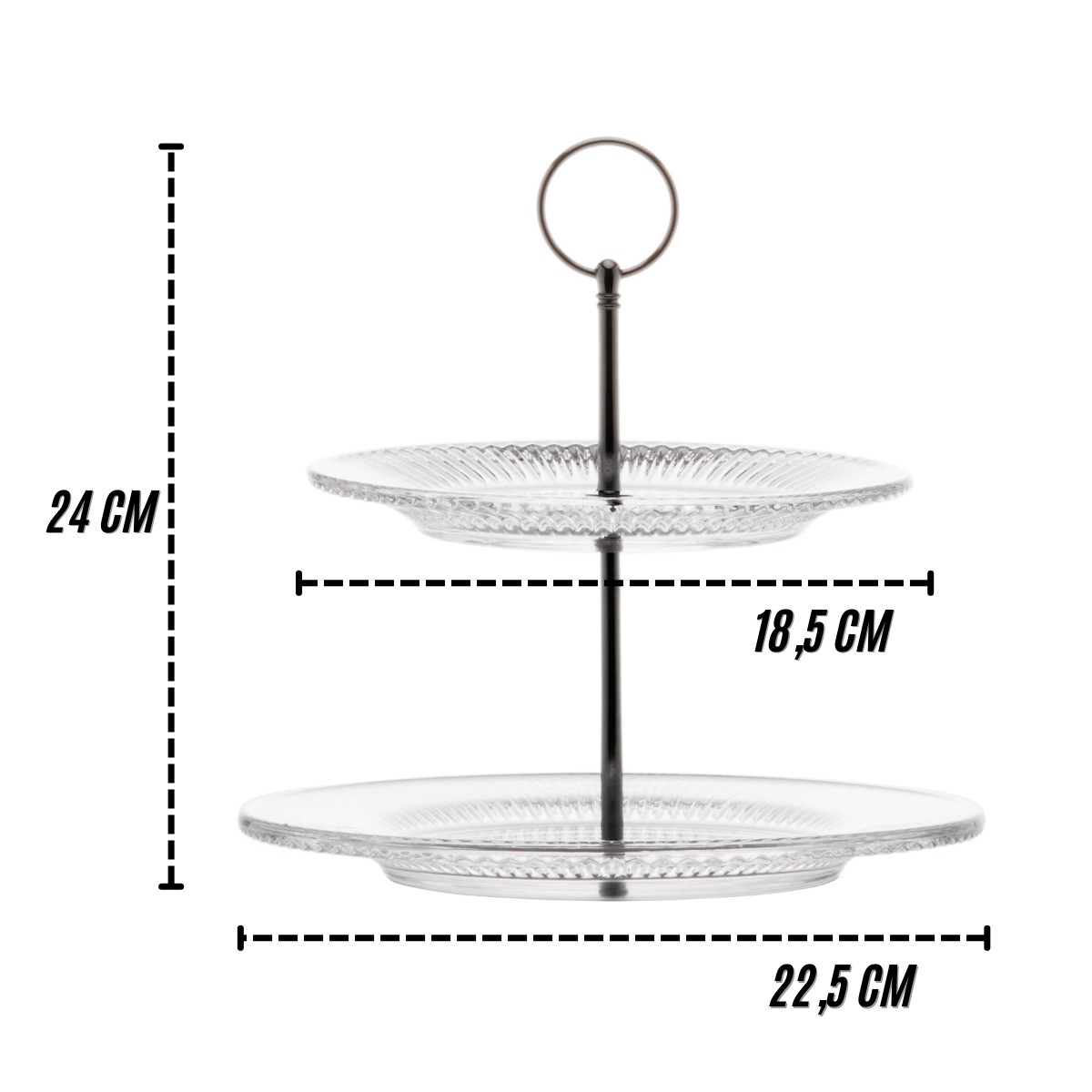 Tamanho: 24 cm de altura, perfeito para exibir seus doces sem ocupar muito espaço.