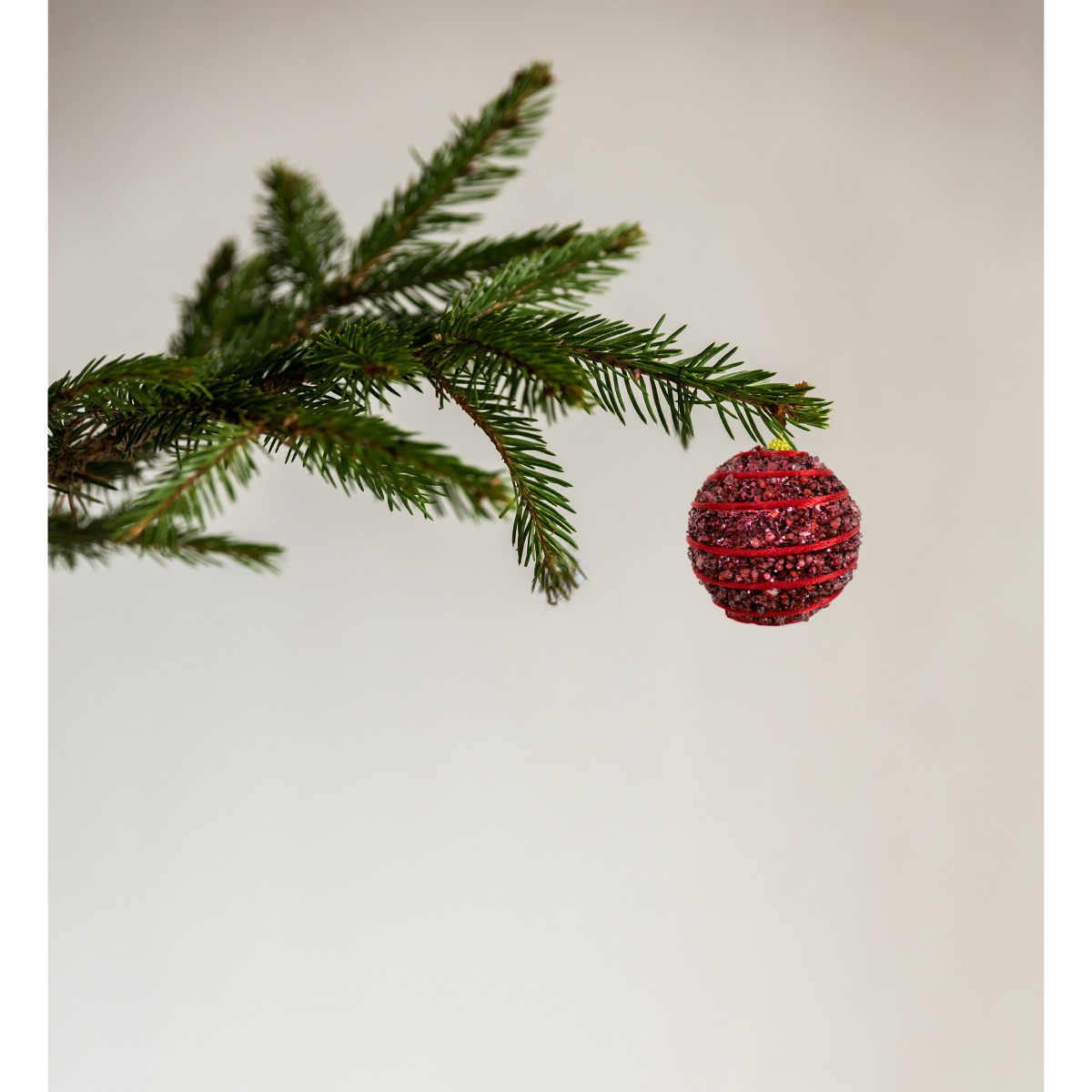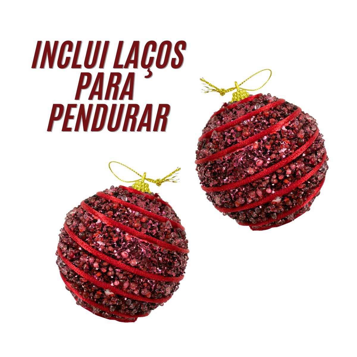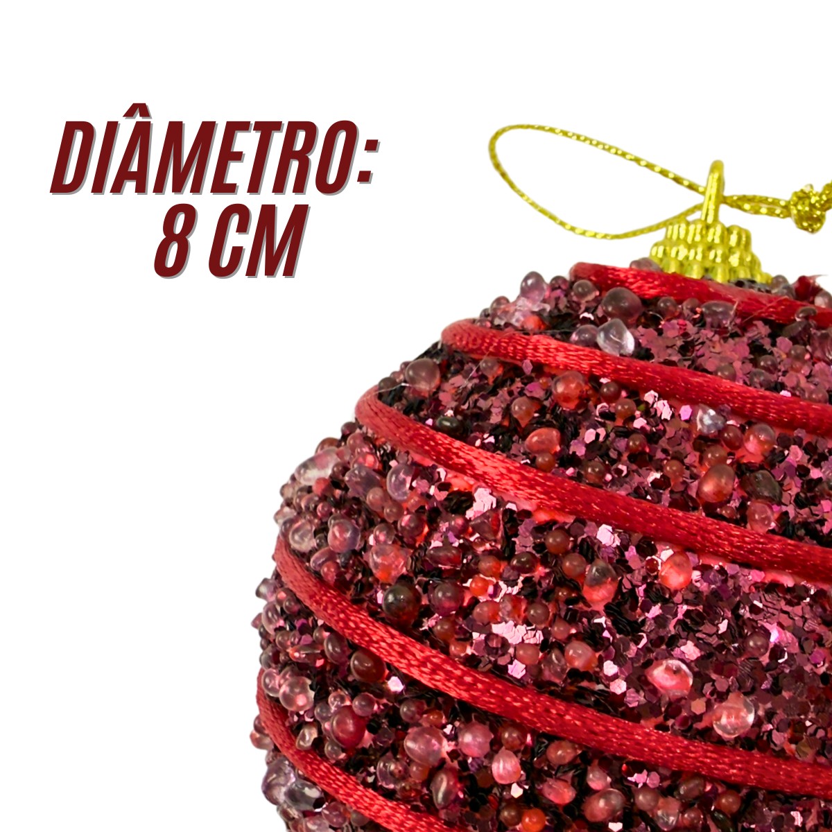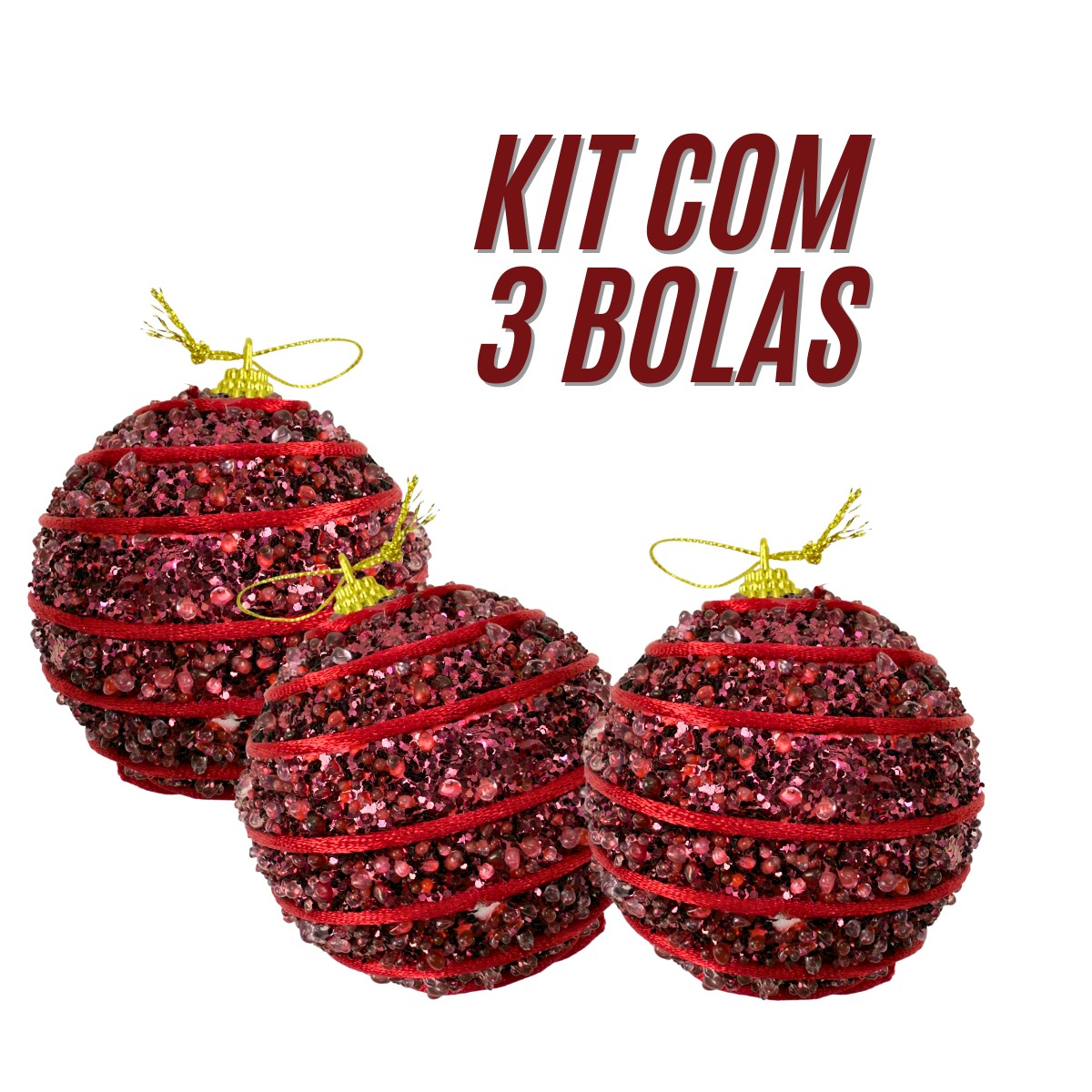 Kit 3 Bolas de Natal Vermelhas com Pedrarias e Glitter 8cm - Enfeite para Árvore