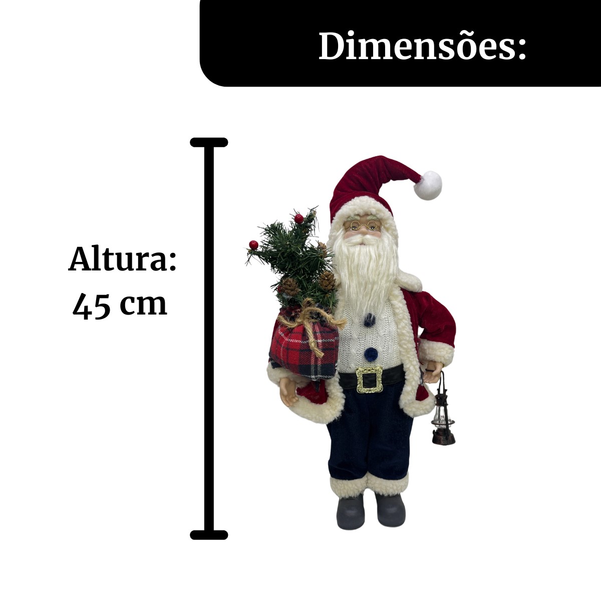 Altura: 45 cm, ideal para decorar mesas, prateleiras, ou até mesmo o pé da árvore de Natal.