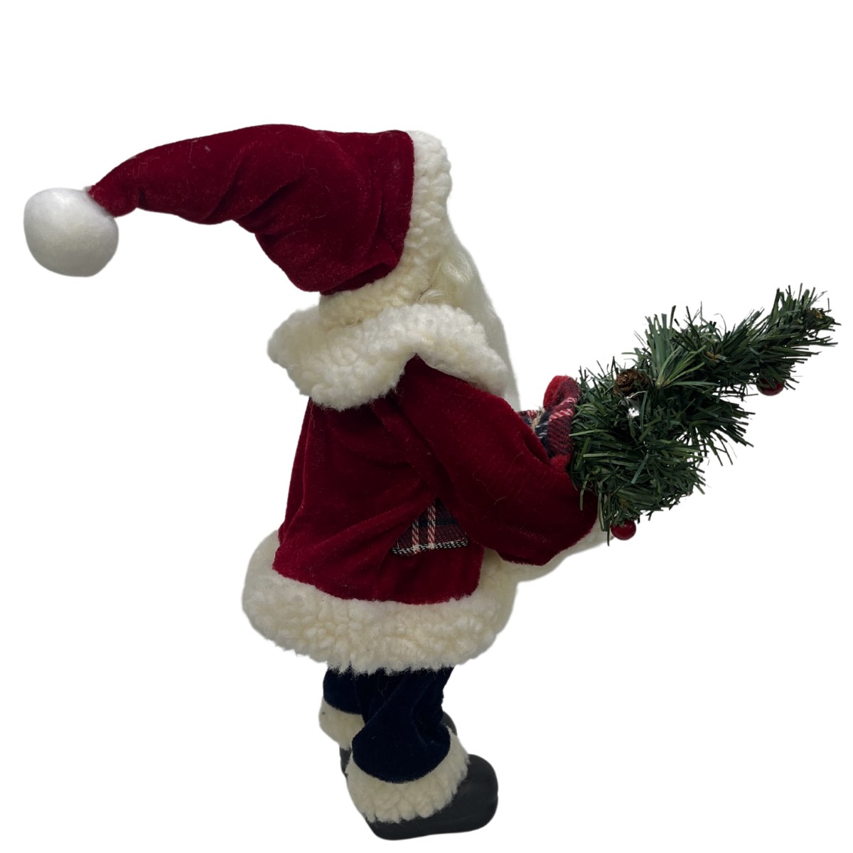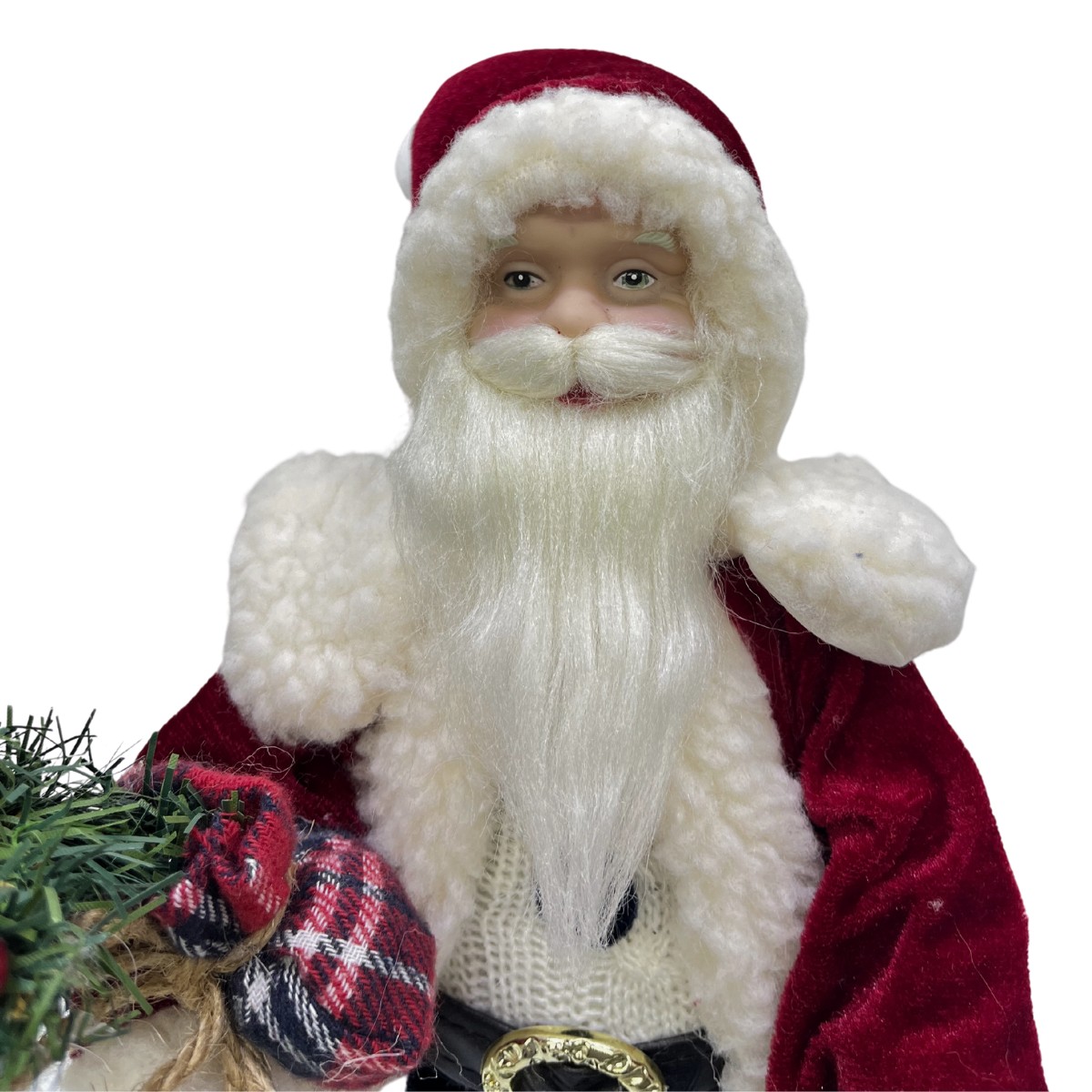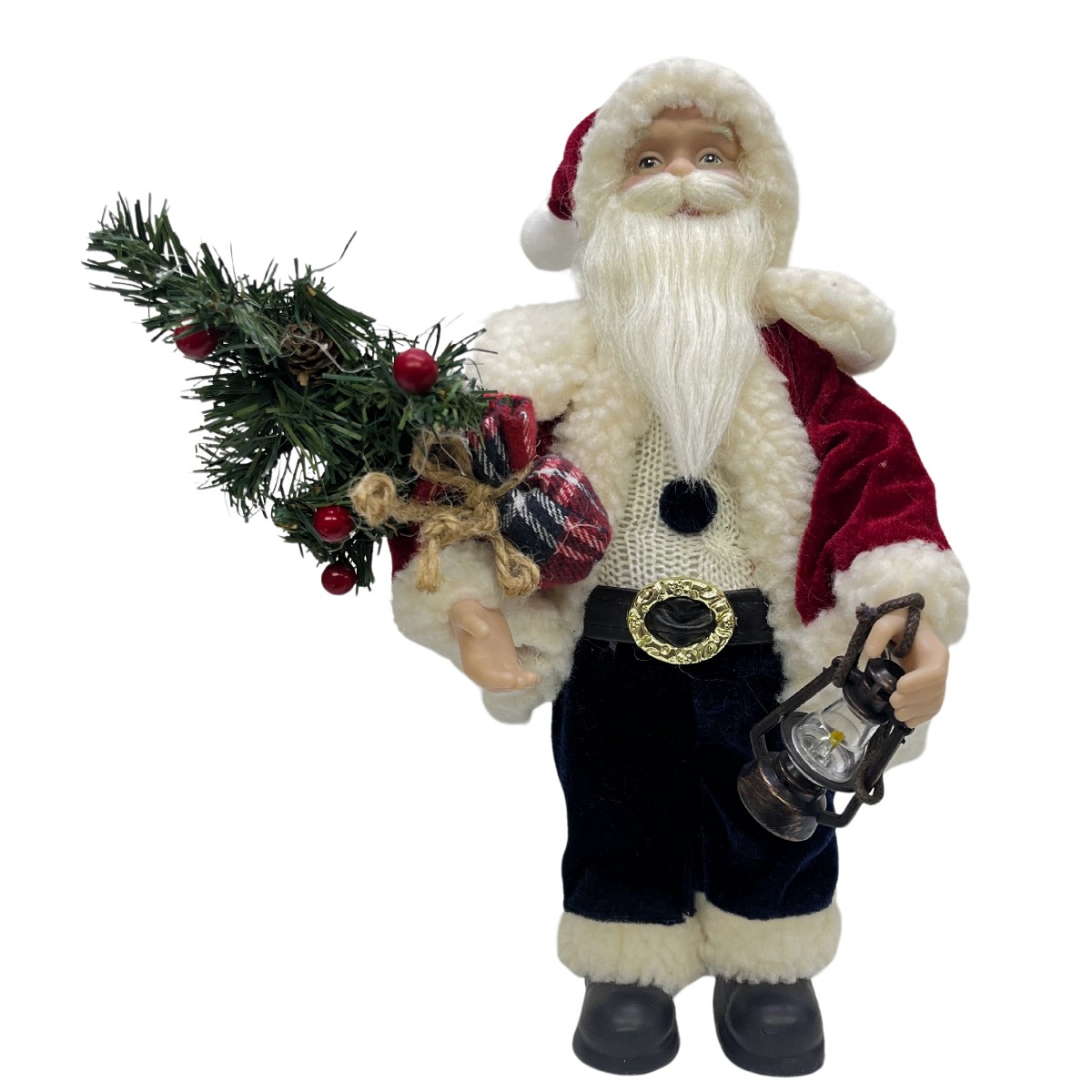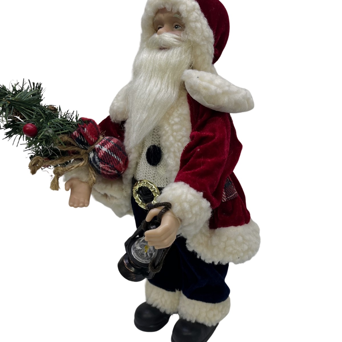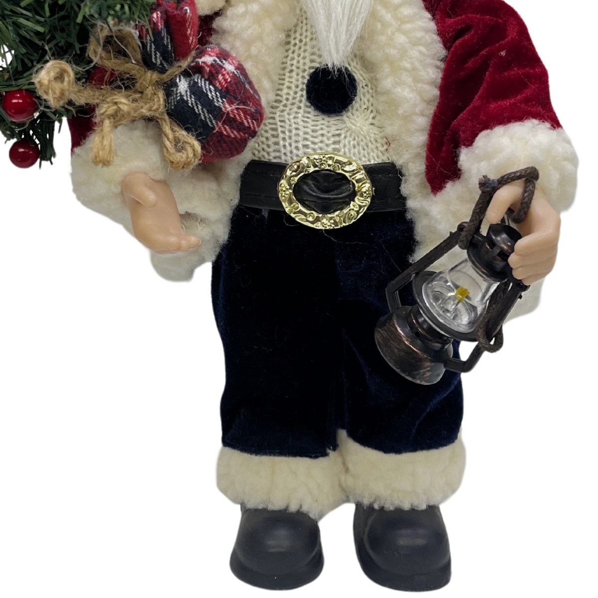 Detalhes Cuidadosos: Roupa texturizada, barba e cabelo brancos, além de acessórios como botas, cinto e gorro, que conferem um visual autêntico e festivo ao enfeite.