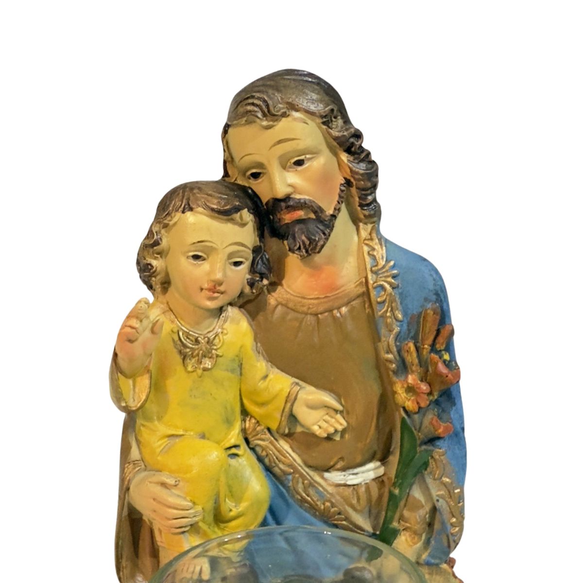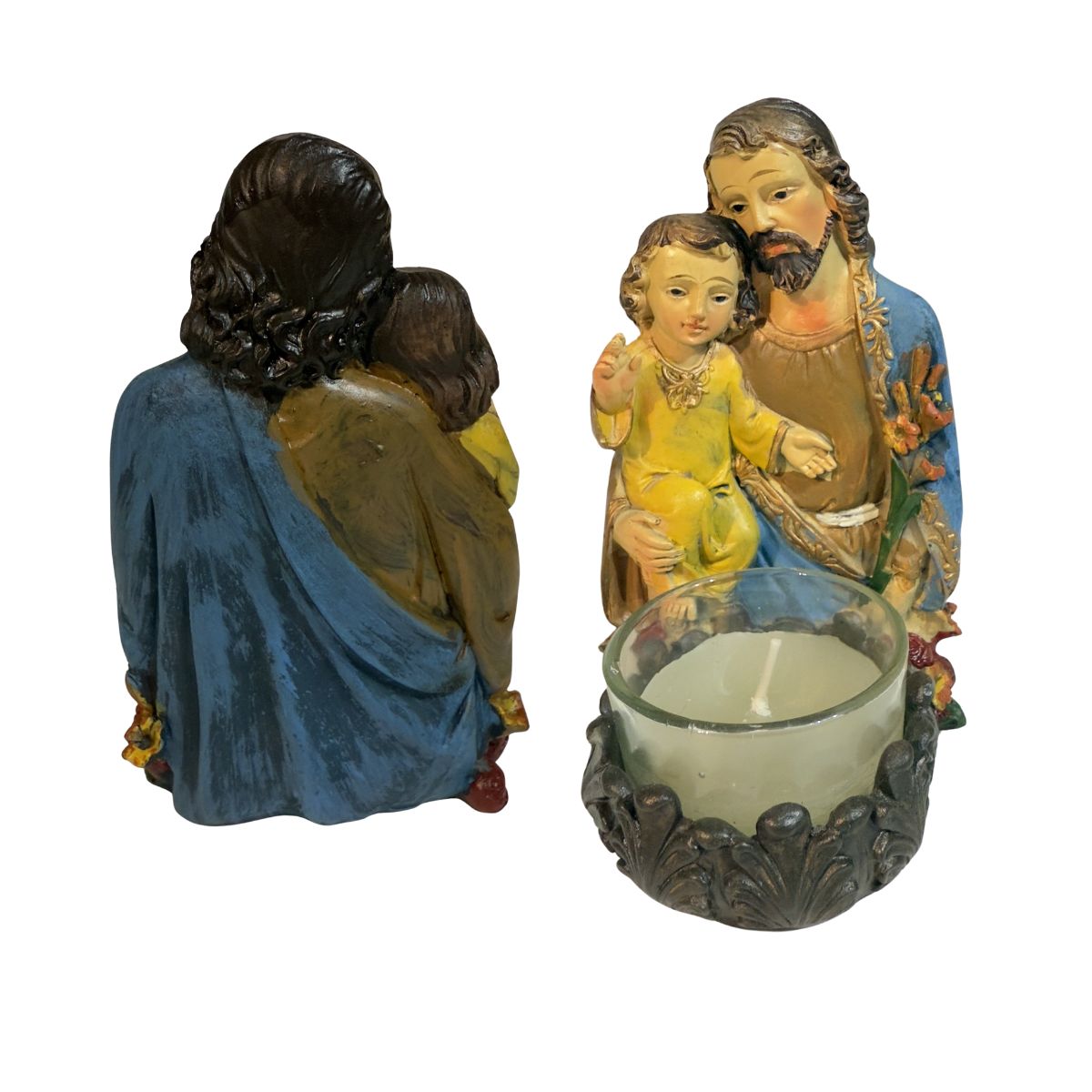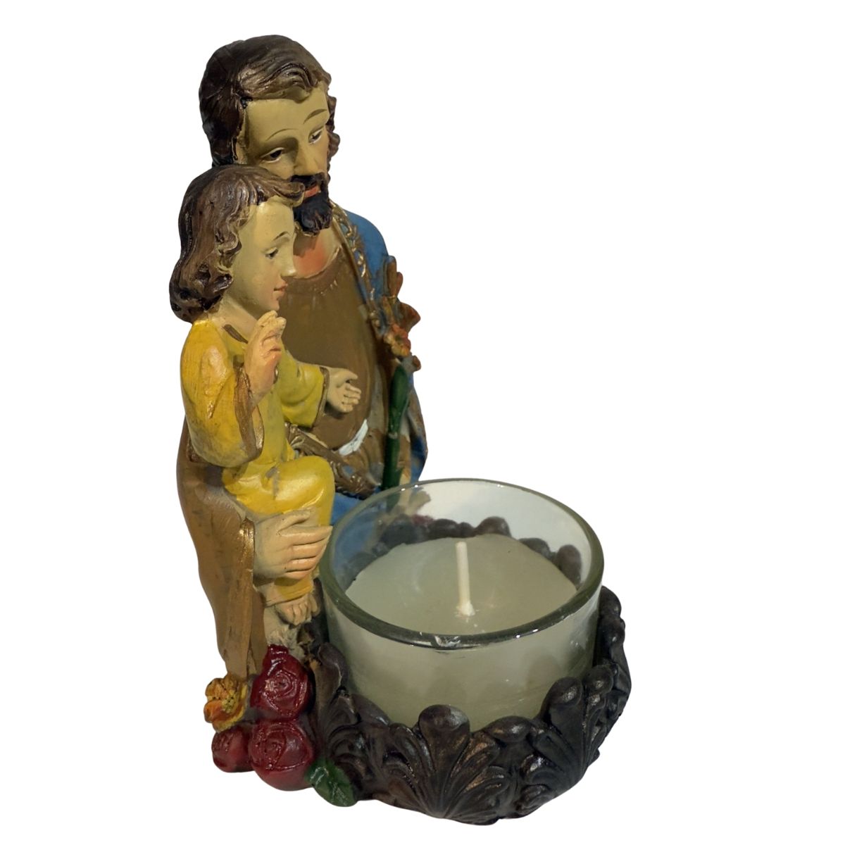 Imagem Religiosa São José com Menino Jesus e Suporte para Vela - Resina Decorativa