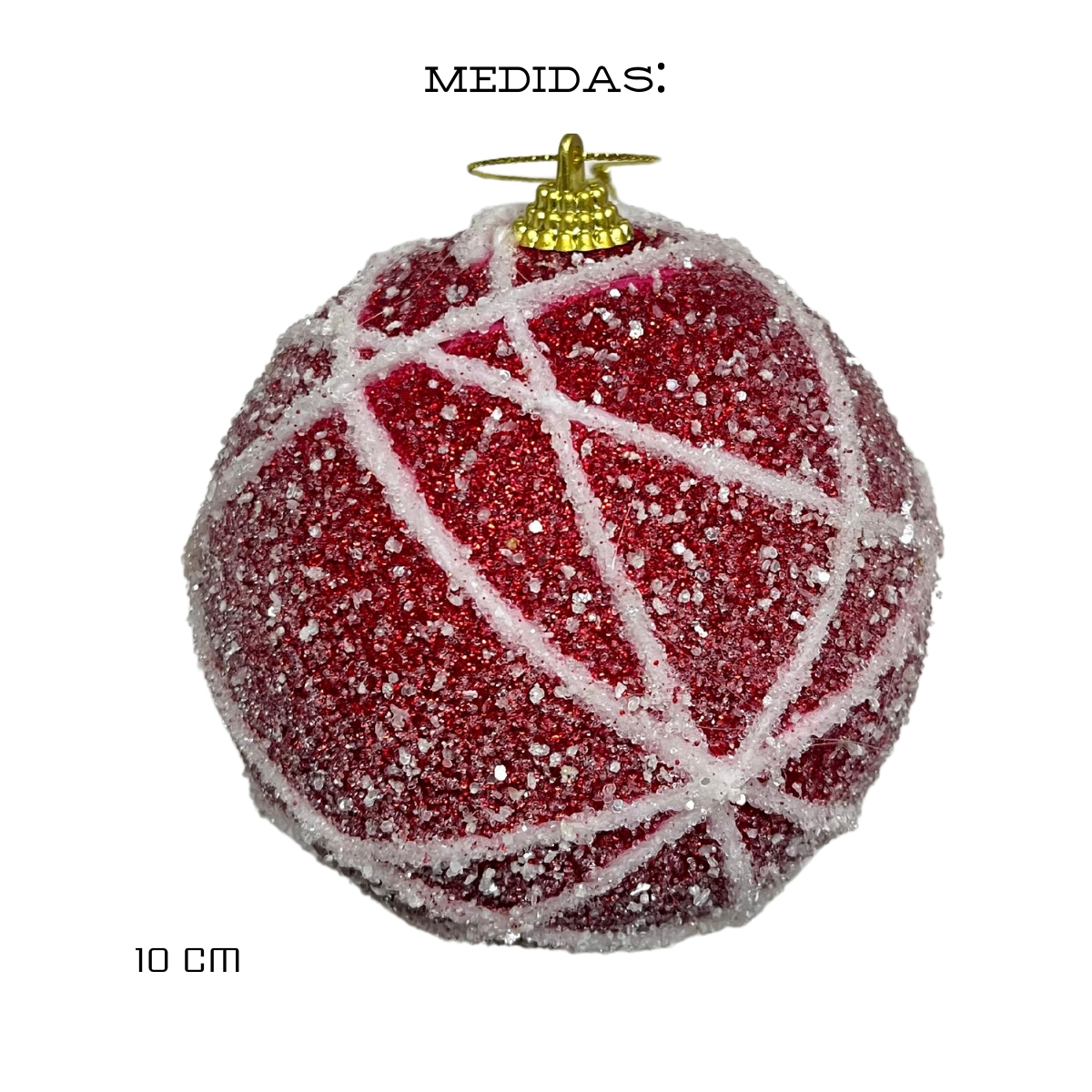 Decoração: Cada bola é enfeitada com glitter brilhante, proporcionando um efeito cintilante que reflete a luz e chama a atenção.