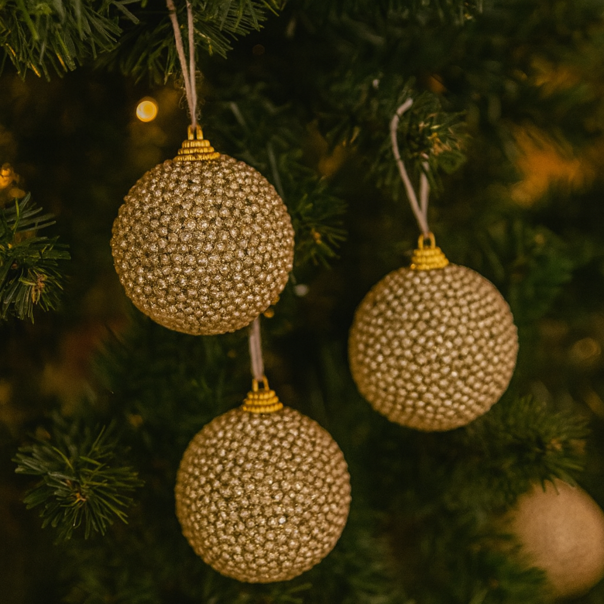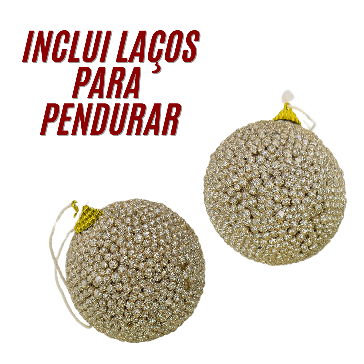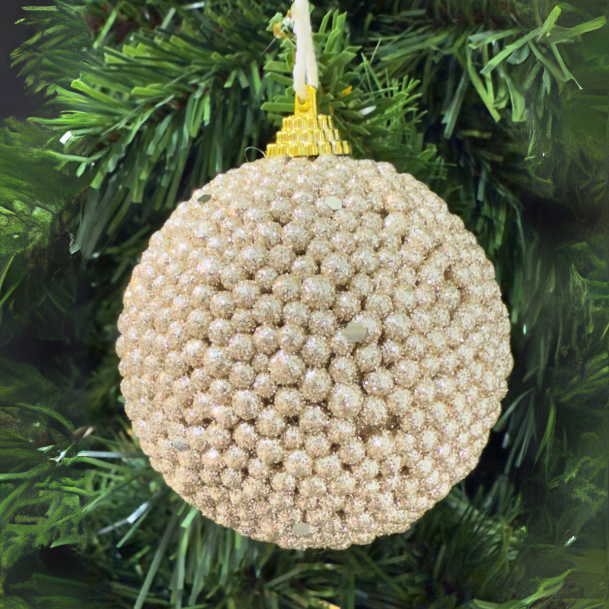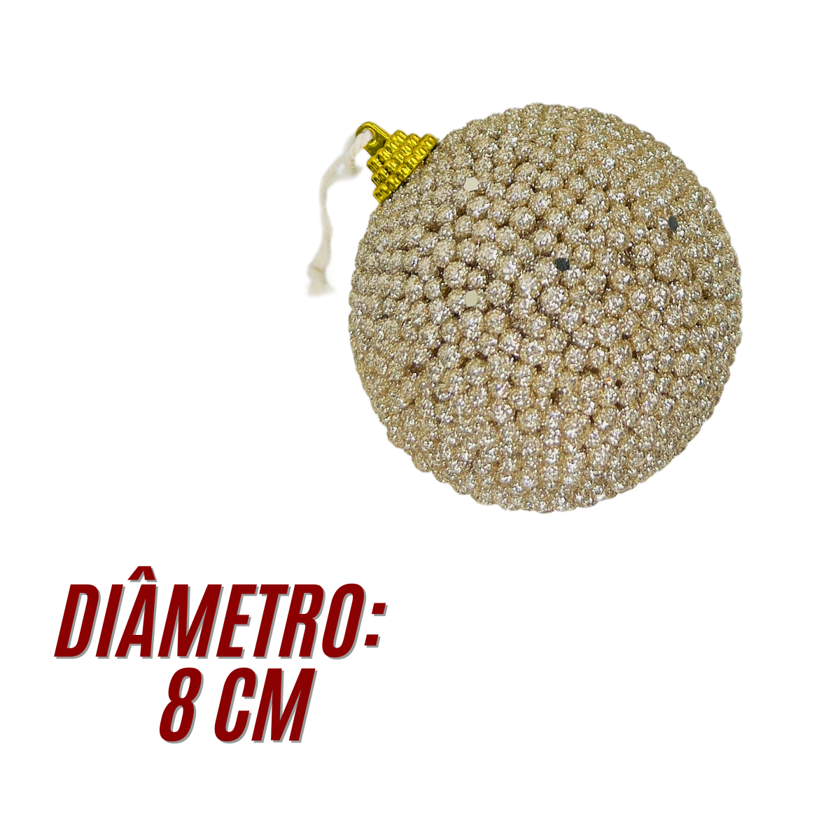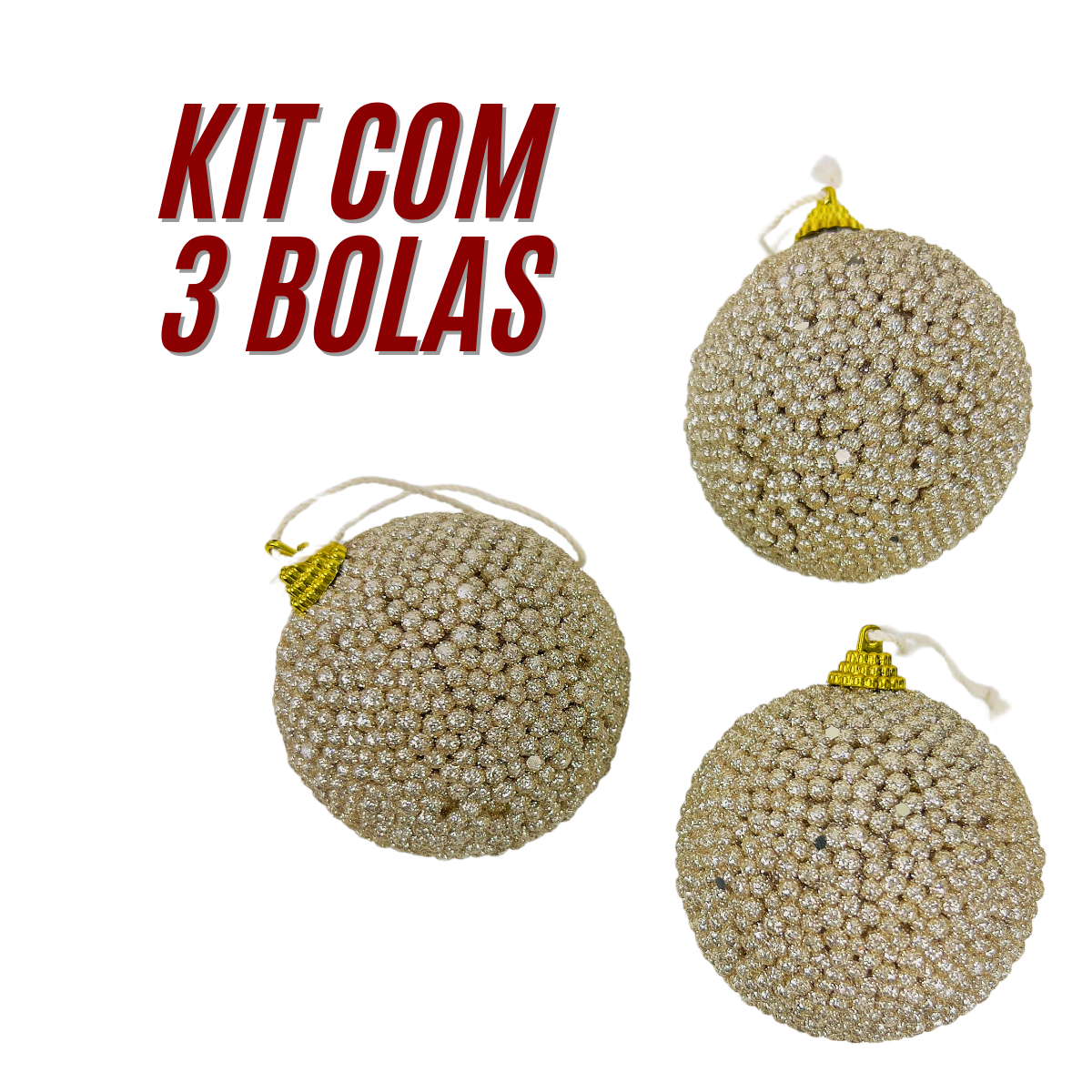Kit 3 Bolas de Natal Champanhe com Glitter – 8 cm