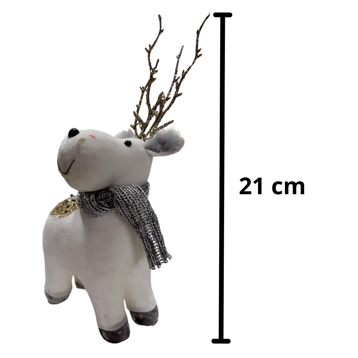 Adicione um toque de charme festivo à sua decoração com este adorável enfeite de Natal. Este alce encantador, com aproximadamente 21 cm de altura, está em pé, pronto para trazer alegria às suas festividades. Ele é elegantemente vestido com um cachecol natalino, que adiciona um toque vibrante e acolhedor à sua aparência.
