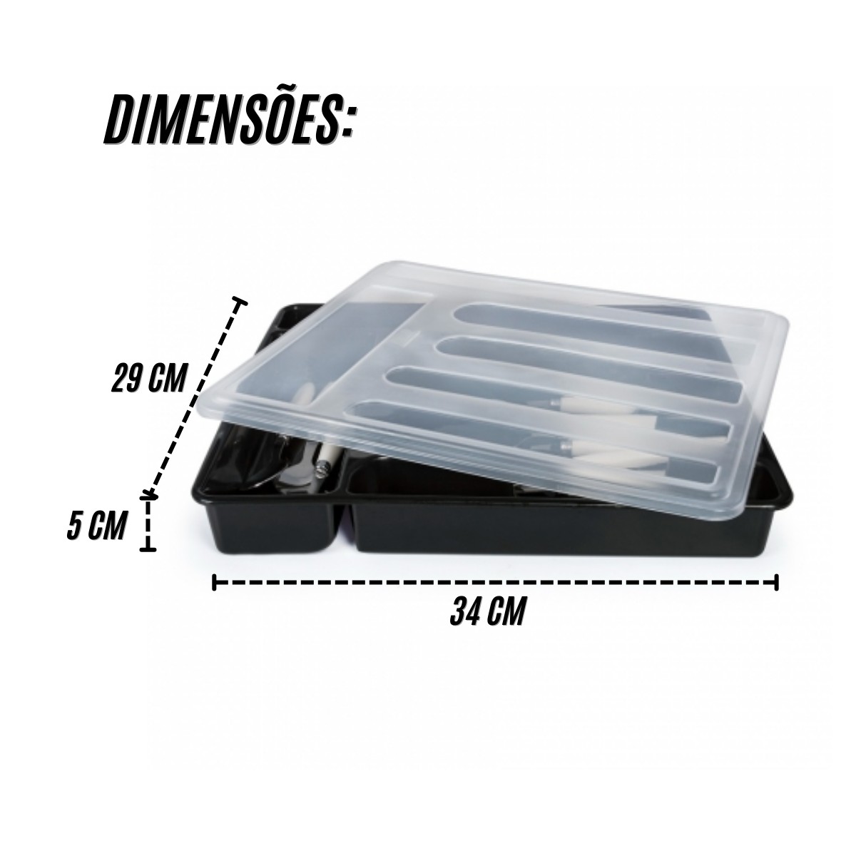 Mantenha seus talheres organizados e protegidos com o Porta Talheres com Tampa Organizador de Gaveta com 6 Divisórias. Este organizador funcional é ideal para separar garfos, facas, colheres e outros utensílios, enquanto a tampa protetora transparente mantém tudo limpo e livre de poeira. Feito em material resistente e fácil de limpar, ele é perfeito para otimizar o espaço das gavetas e manter sua cozinha mais prática e organizada!
