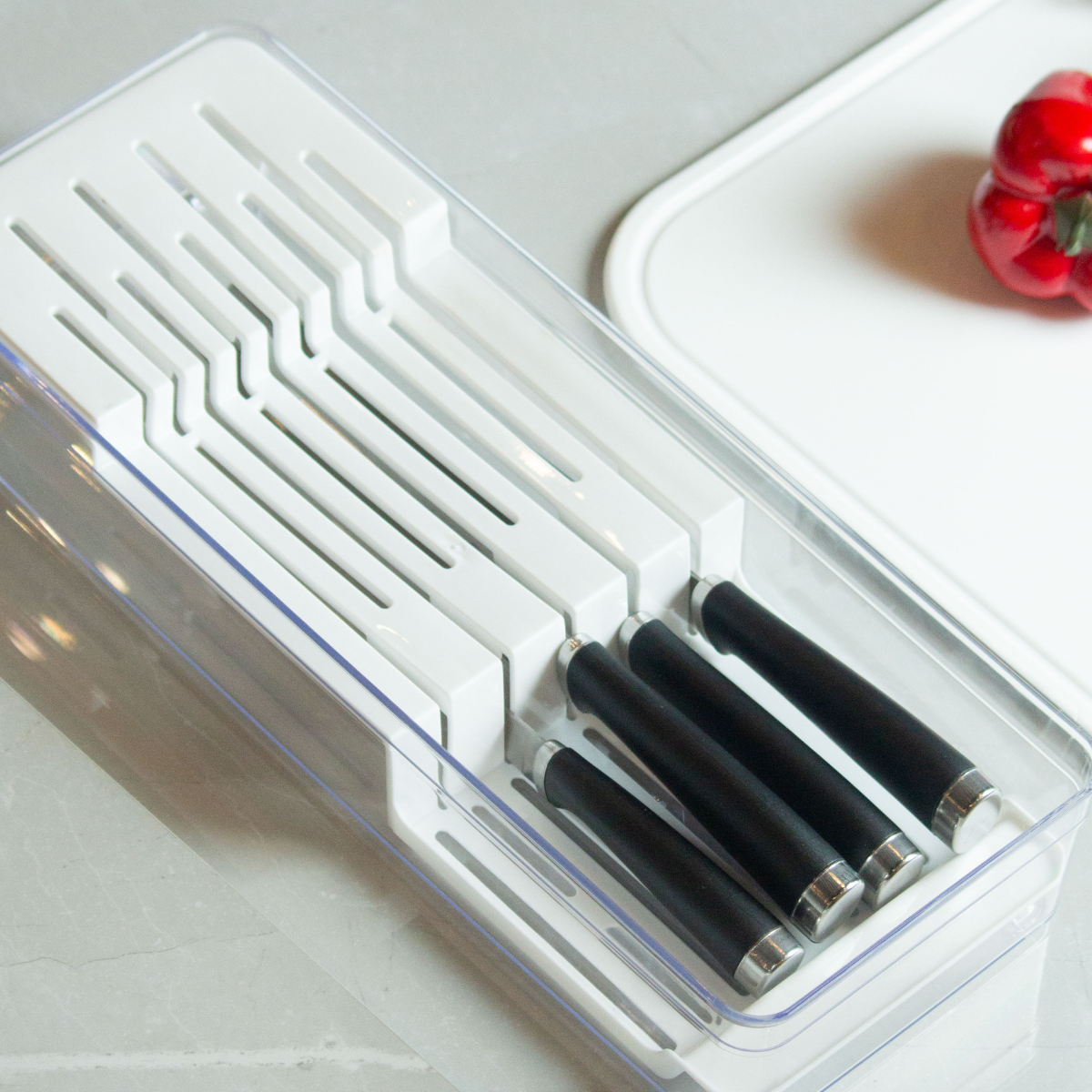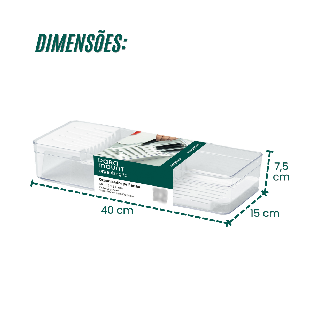 Fabricado em poliestireno BPA Free, um material resistente, seguro e de fácil limpeza, esse organizador é ideal para otimizar o espaço dentro da gaveta, deixando sua cozinha mais organizada e prática. Seu formato inteligente permite um encaixe perfeito, mantendo as facas bem acomodadas e reduzindo o risco de cortes acidentais.
