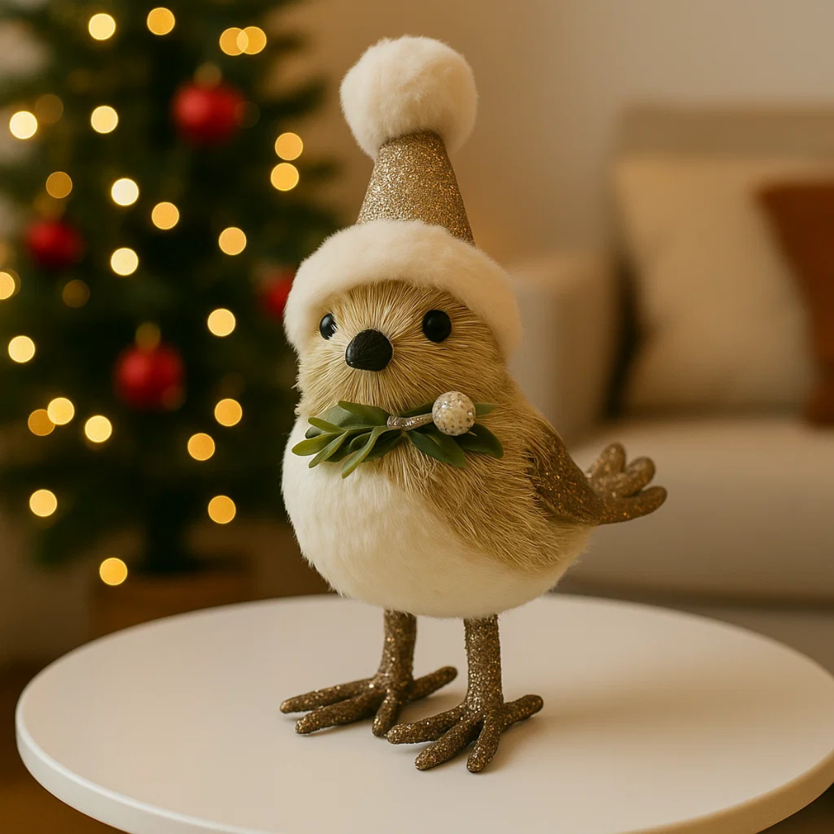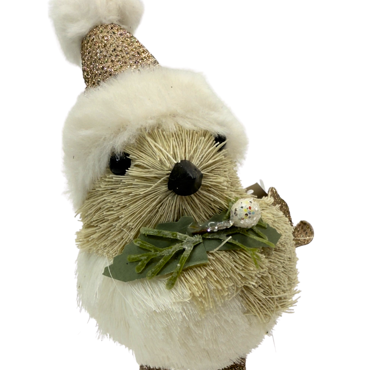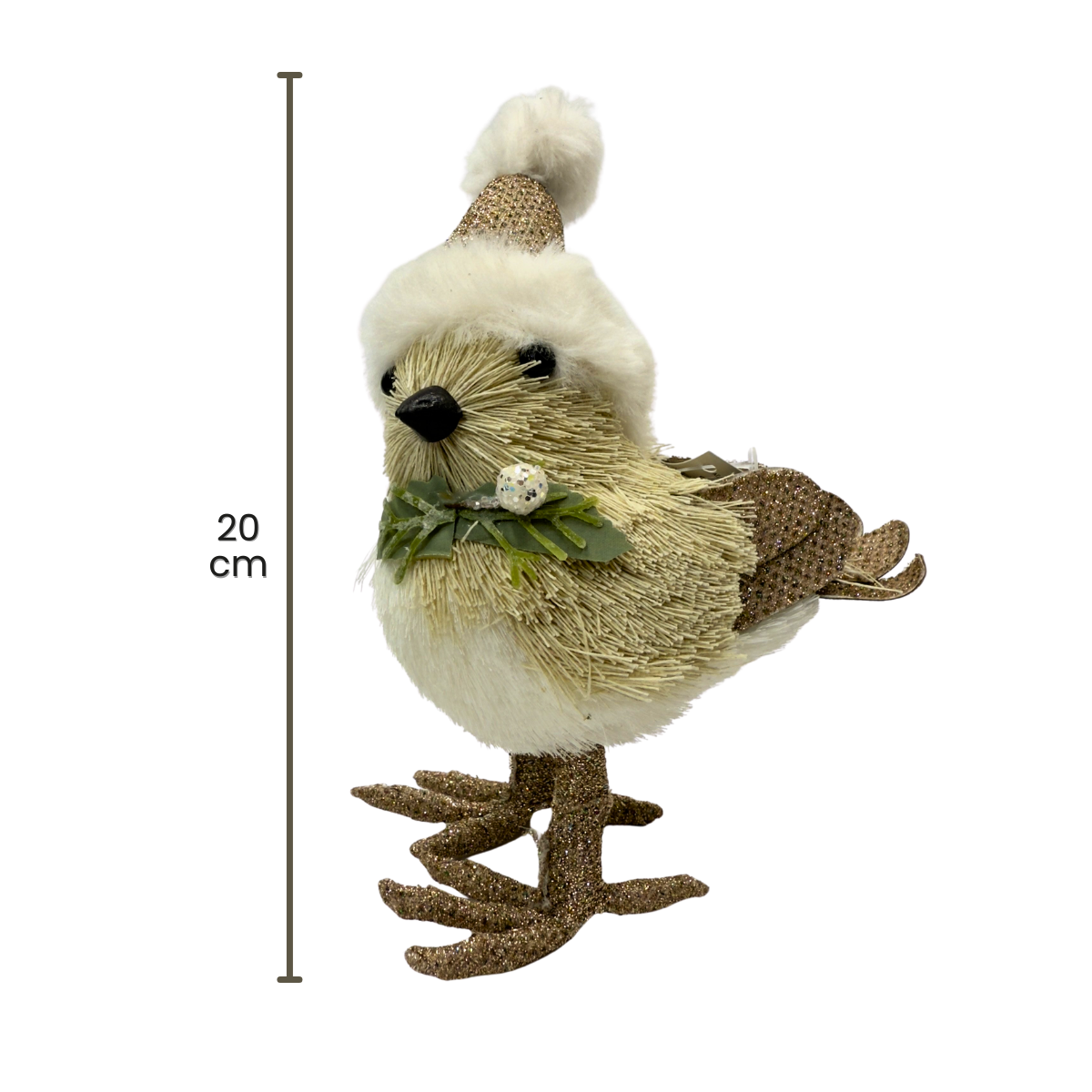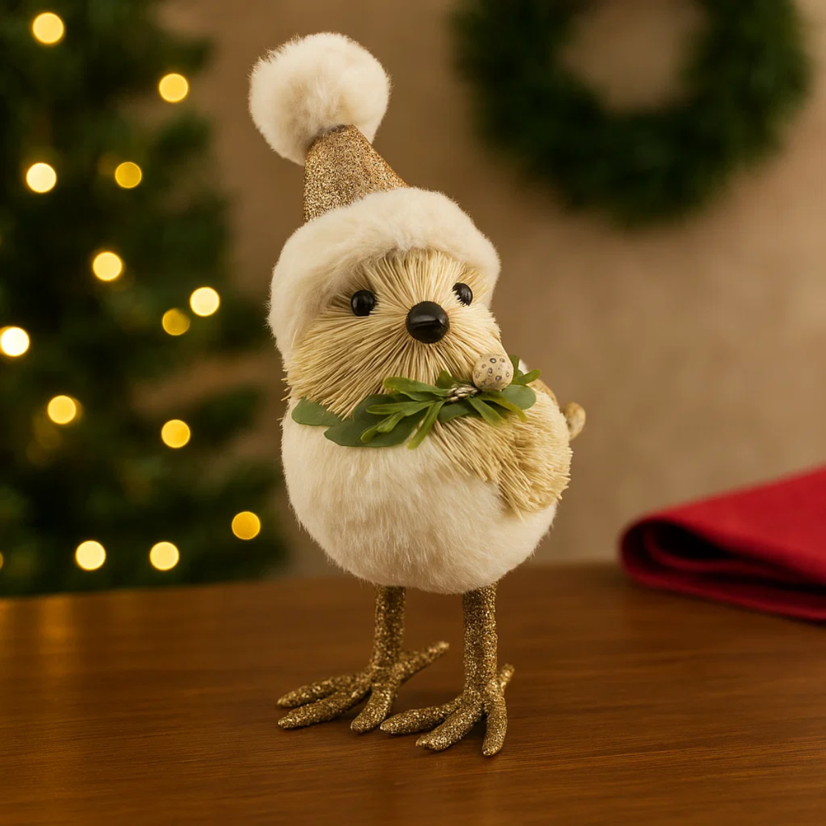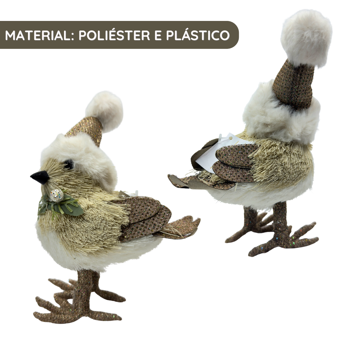 Pássaro Decorativo com Gorro 20cm - Enfeite Natalino