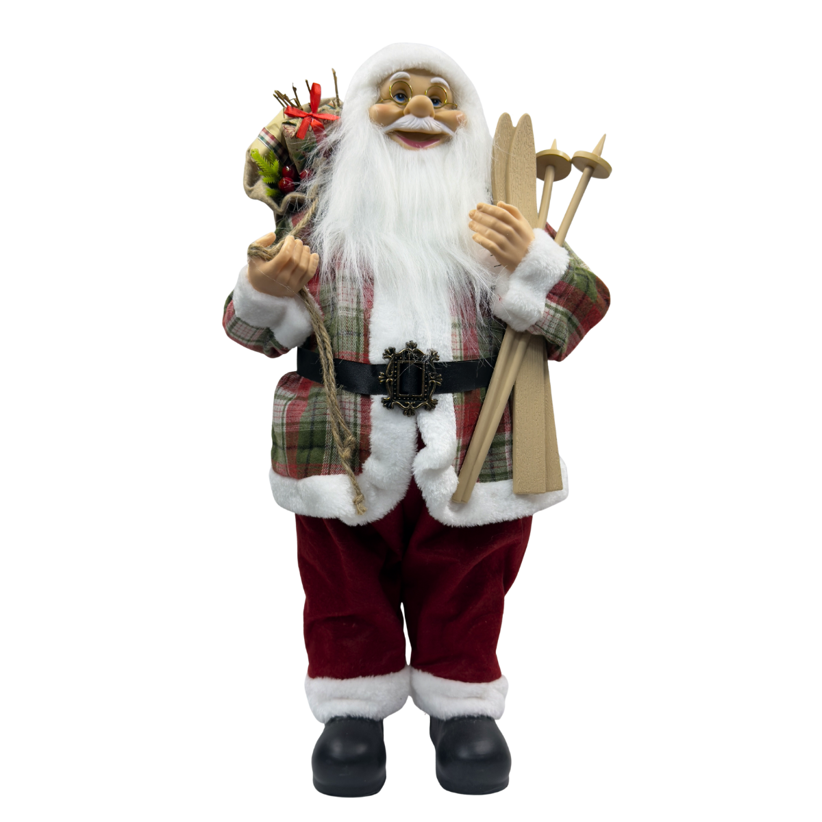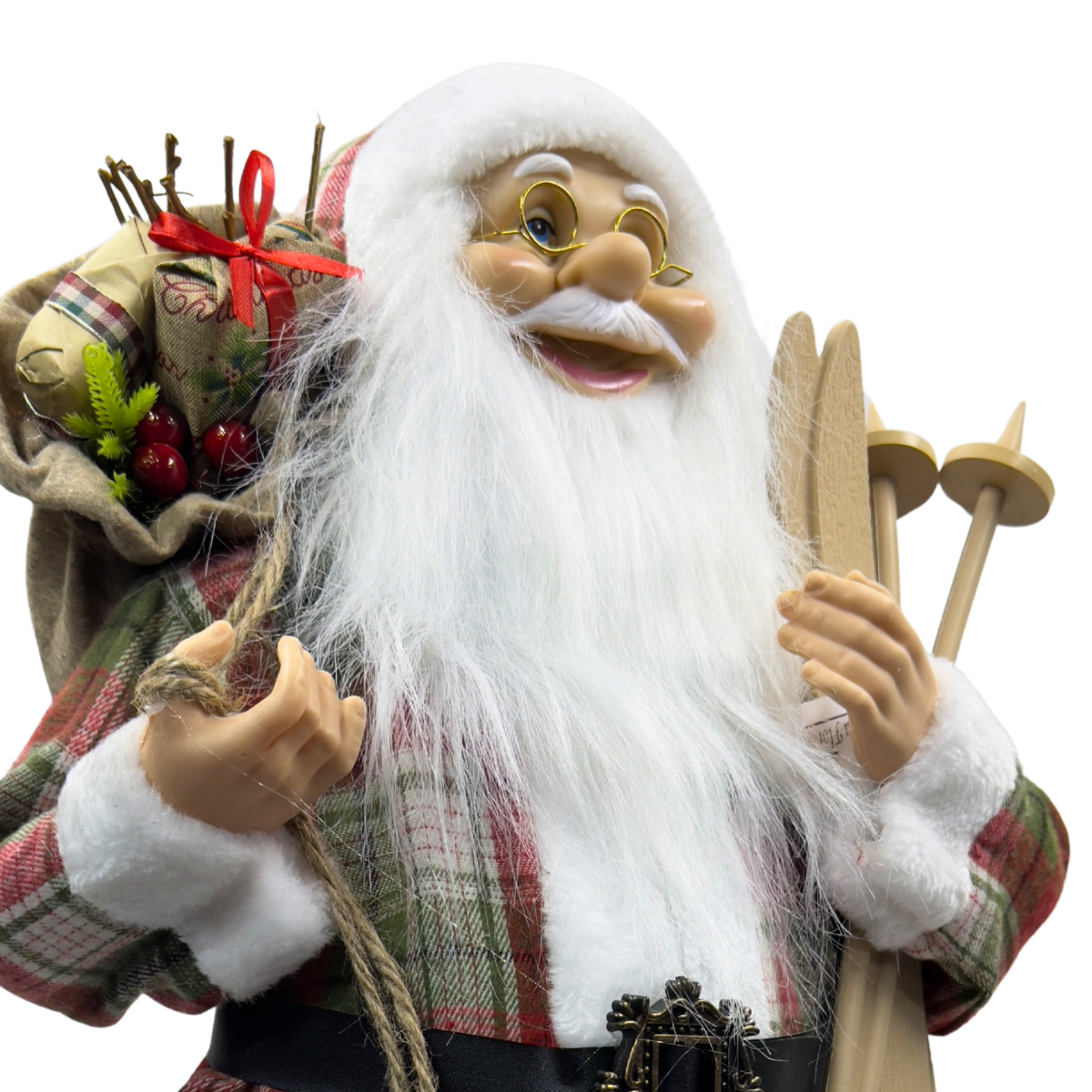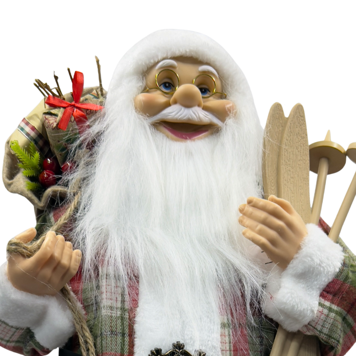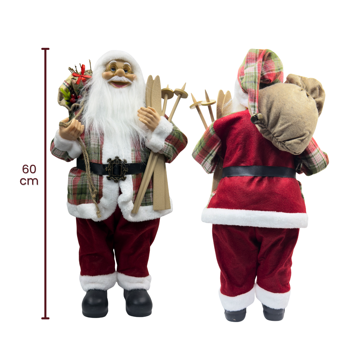 Transforme sua decoração natalina com o Papai Noel Decorativo de 60cm, uma peça cheia de detalhes que transmite o verdadeiro espírito do Natal. Produzido em poliéster e plástico, ele combina resistência, acabamento de qualidade e um visual encantador para sua casa ou vitrine. O Papai Noel veste traje clássico em vermelho com estampa xadrez e acabamento em pelo branco, além de carregar um saco de presentes decorativo nas costas e esquis nas mãos, trazendo um ar rústico e festivo ao mesmo tempo. Sua barba longa, óculos dourados e feições delicadas proporcionam um realismo especial que chama atenção em qualquer ambiente. Com altura de 60cm, é uma peça de destaque para enfeitar salas, halls de entrada, aparadores, lareiras, mesas de centro ou até compor cenários natalinos maiores. Seu tamanho expressivo e acabamento caprichado tornam o boneco ideal para quem busca uma decoração sofisticada e memorável.