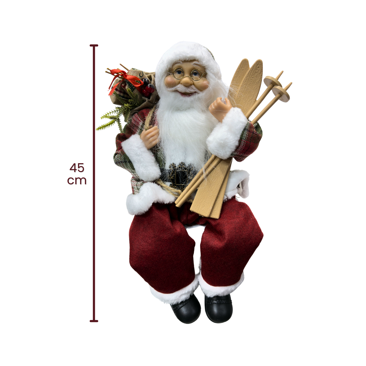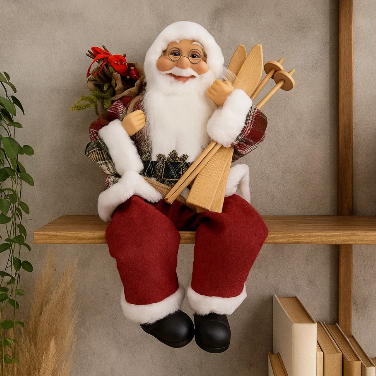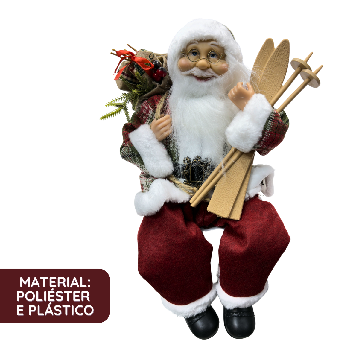 Encante sua decoração natalina com este charmoso Papai Noel Sentado com Esquis, uma peça que une tradição e aconchego. Com 45cm de altura, ele é perfeito para ser colocado em prateleiras, mesas ou até mesmo próximo à árvore, trazendo um ar acolhedor e festivo para qualquer ambiente.