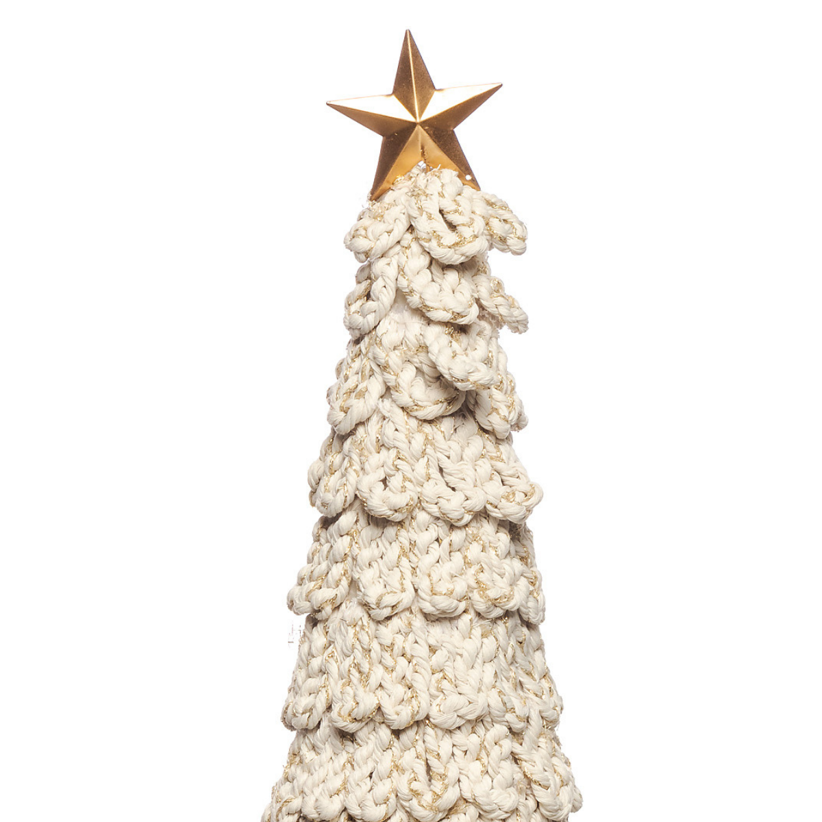 A Árvore Escamada Branca 44cm é uma peça sofisticada e charmosa que une o estilo artesanal ao encanto natalino. Seu design em camadas texturizadas com acabamento trançado traz um toque acolhedor e elegante para a decoração, enquanto a estrela dourada no topo adiciona o brilho perfeito para completar o visual festivo.