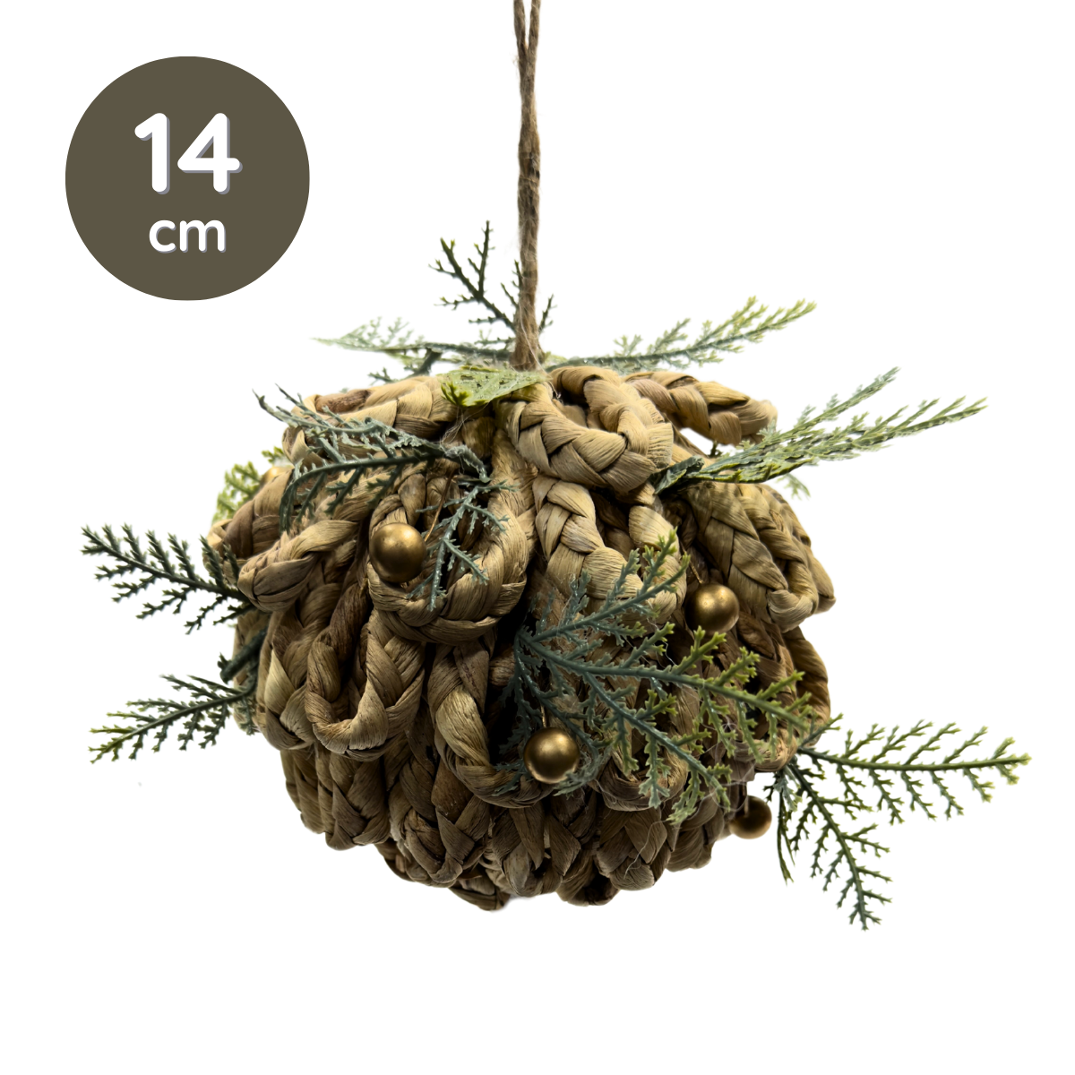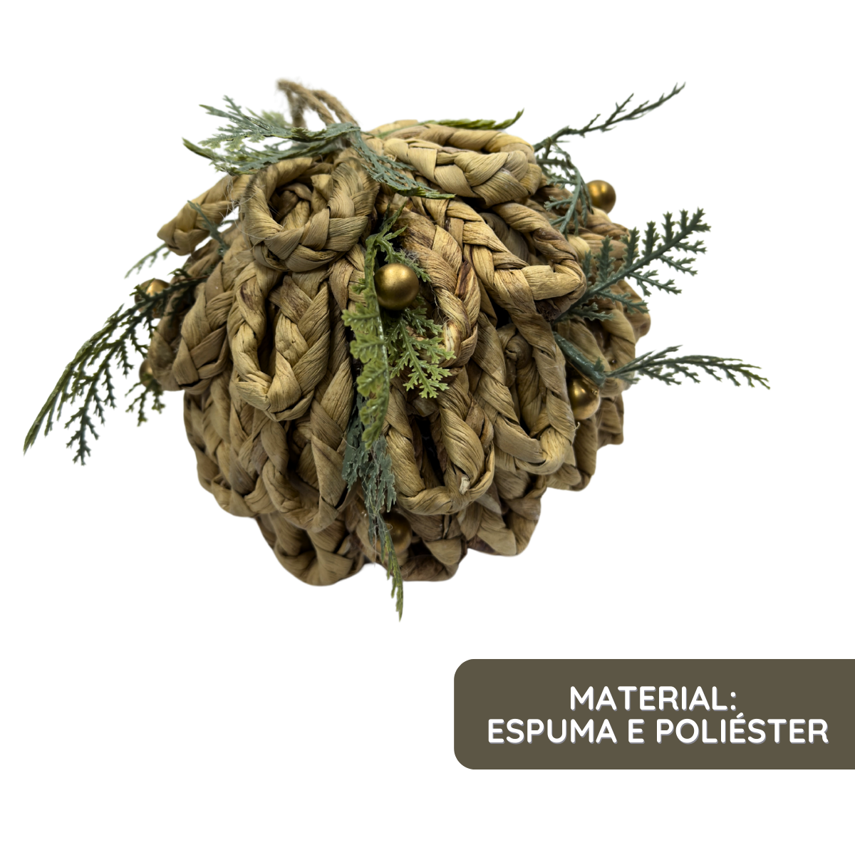 Bola de Natal Decorativa em Palha com Ramos 14cm