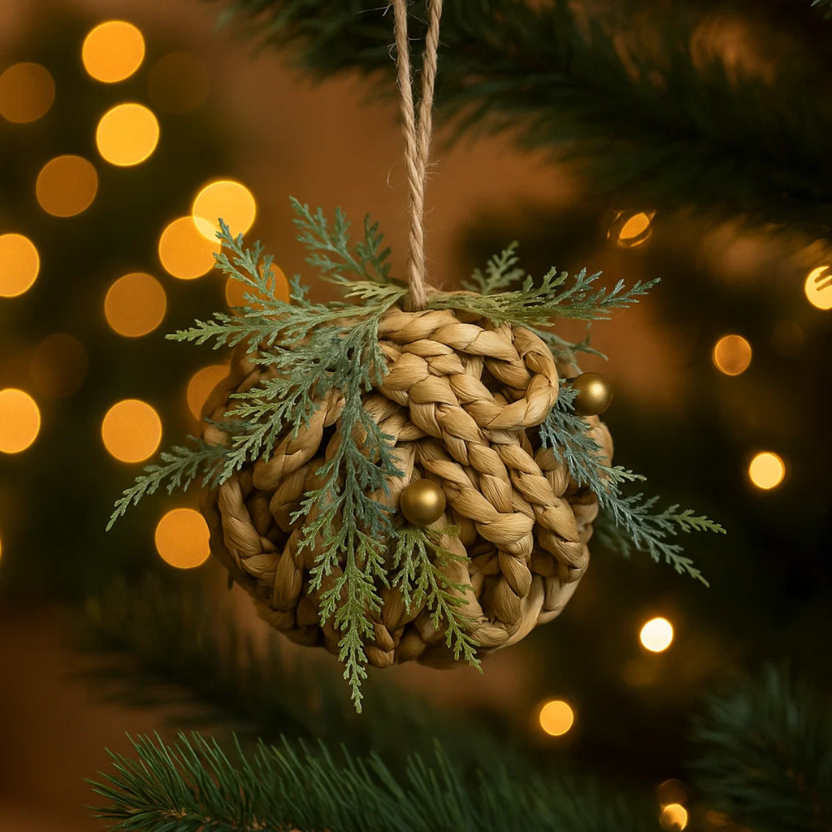 Encante sua decoração natalina com a bola de Natal em palha natural, cuidadosamente trançada para transmitir charme rústico e acolhedor. O design artesanal é enriquecido com ramos verdes decorativos e pequenas esferas douradas, que trazem delicadeza e um toque festivo ao ambiente. Com 14 cm de diâmetro, é perfeita para ser pendurada na árvore de Natal, utilizada em guirlandas, arranjos de mesa ou até mesmo em composições decorativas em portas e janelas. O laço para pendurar já acompanha a peça, facilitando o uso em diferentes locais. Produzida em espuma, poliéster e palha trançada, garante leveza, resistência e acabamento natural, podendo ser reutilizada em diversas comemorações natalinas.