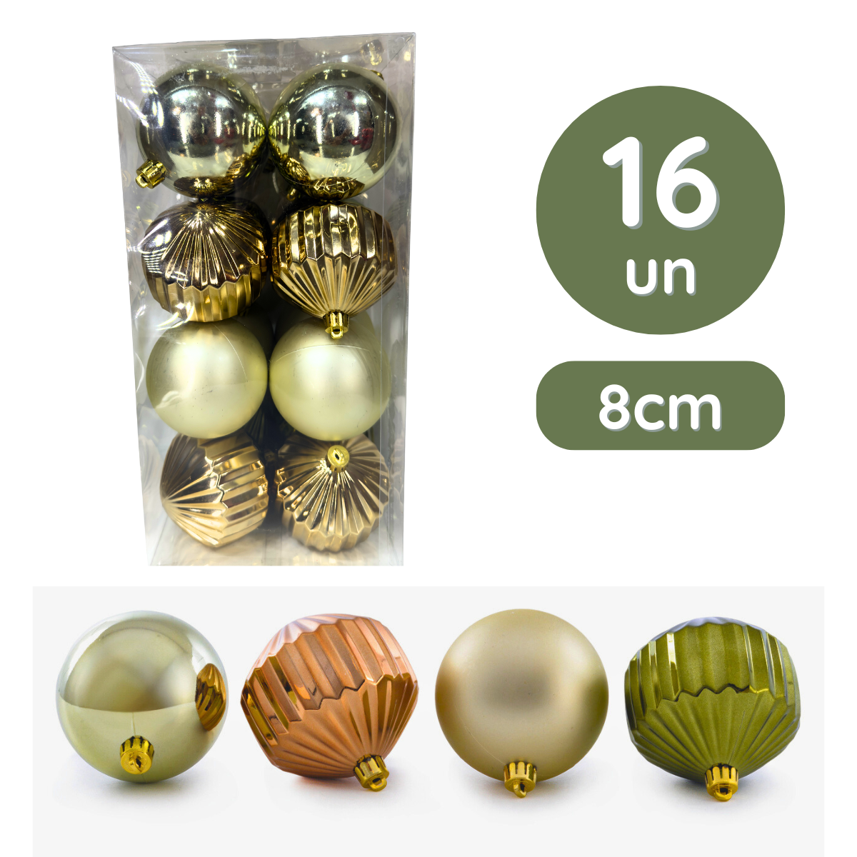 Bolas de Natal Decorativas - Kit com 16 Unidades (8 cm) - 3 Modelos