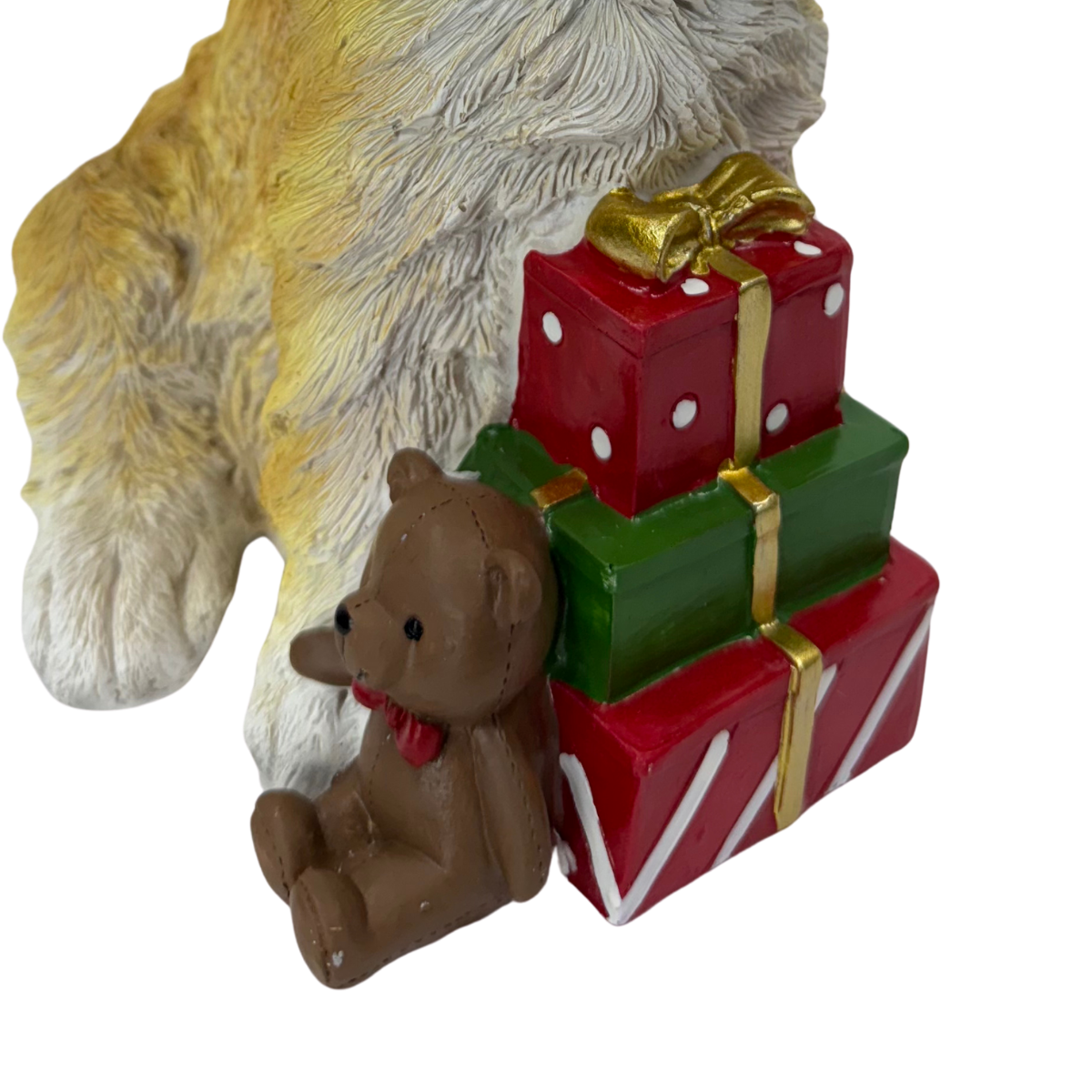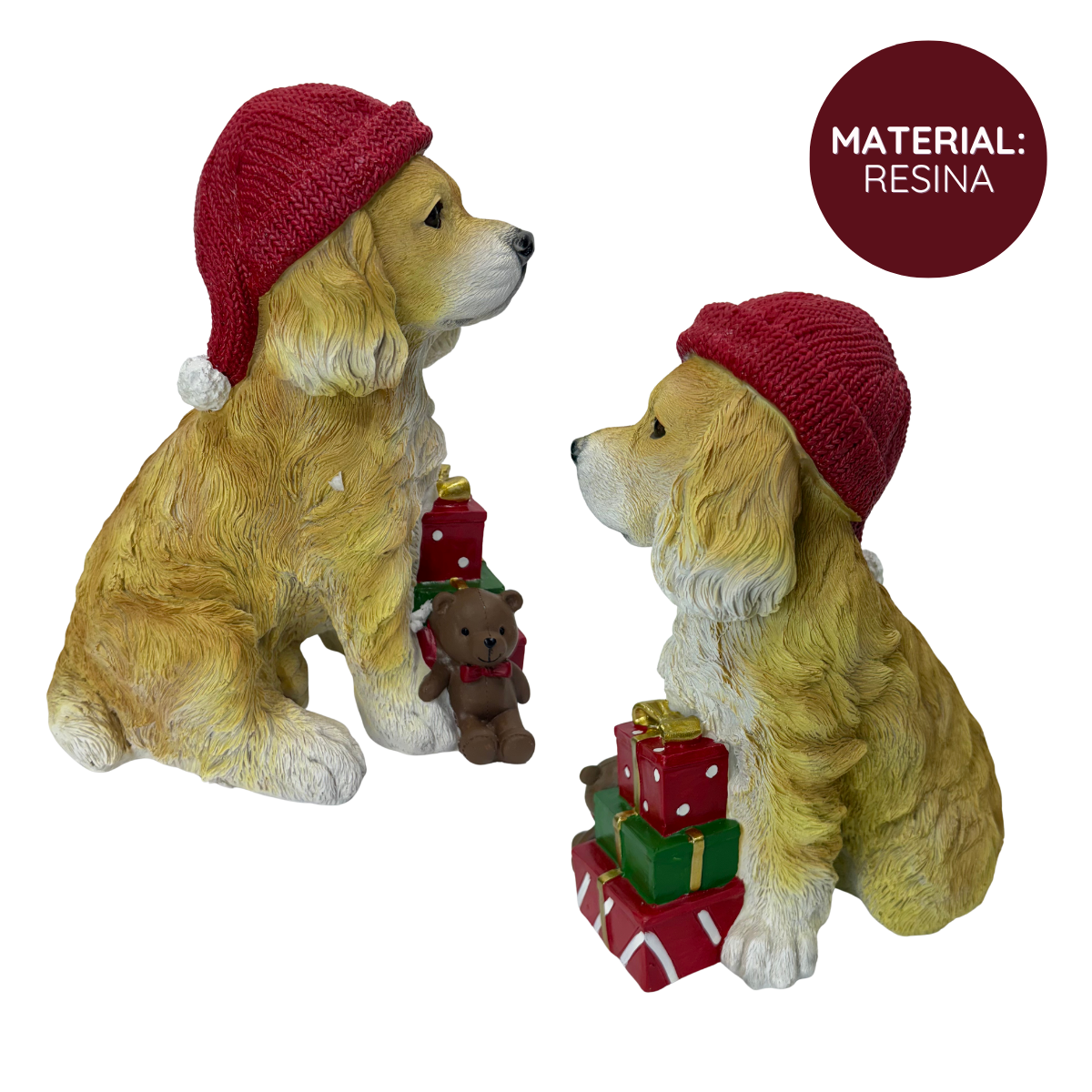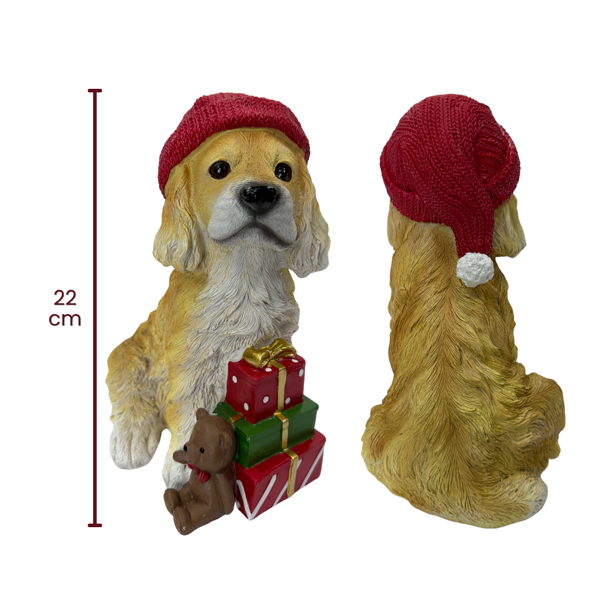 Cachorro Natalino com Touca Vermelha e Presentes – 22cm
