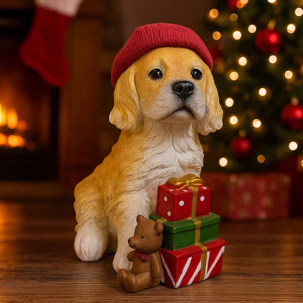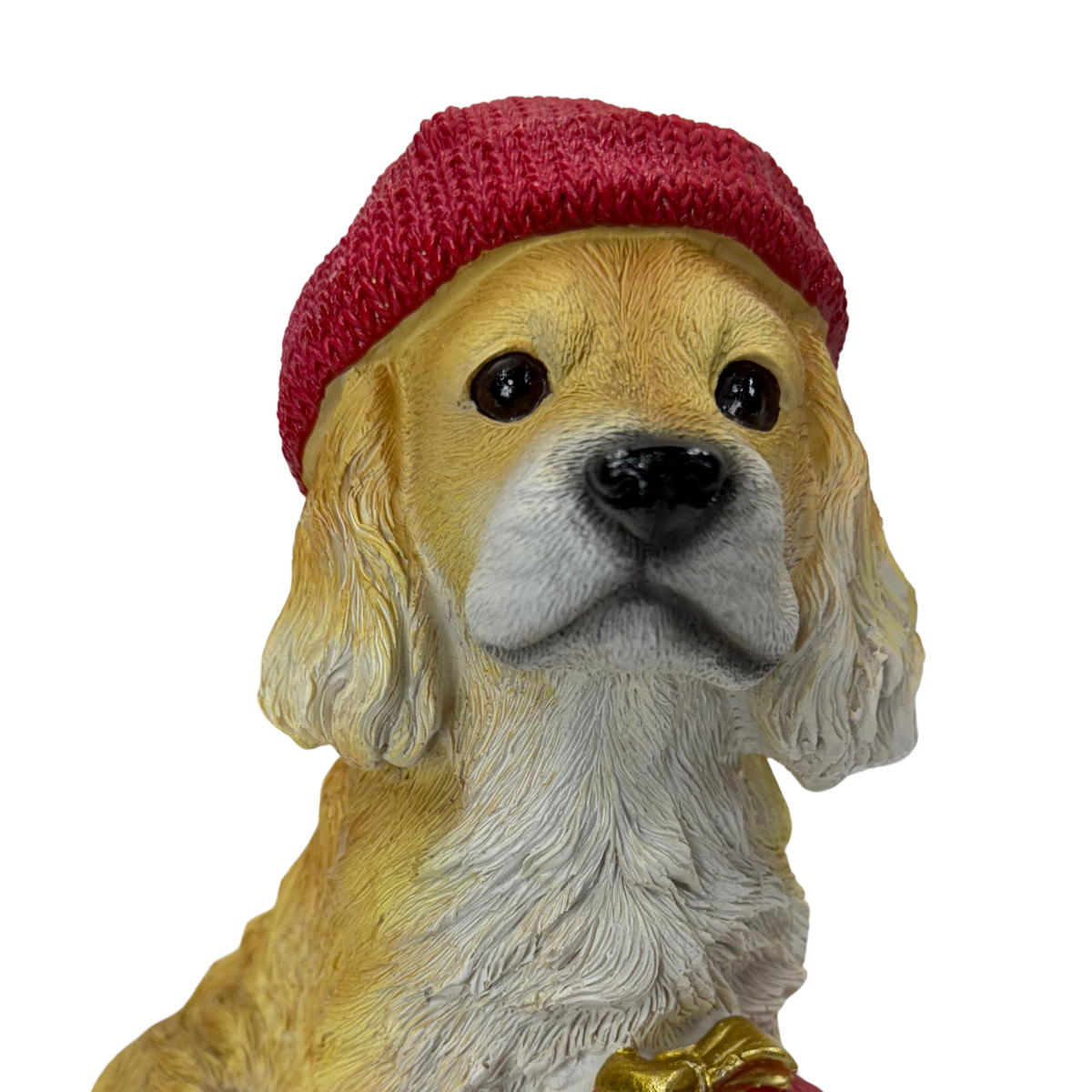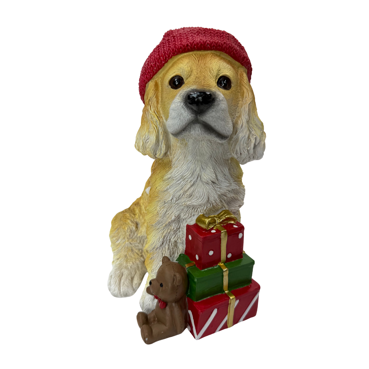 Cachorro Natalino com Touca Vermelha e Presentes – 22cm
