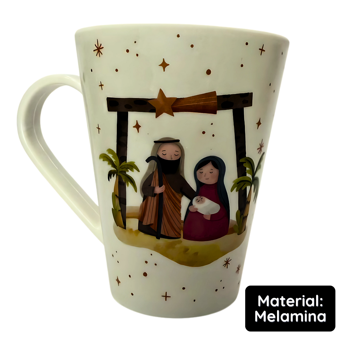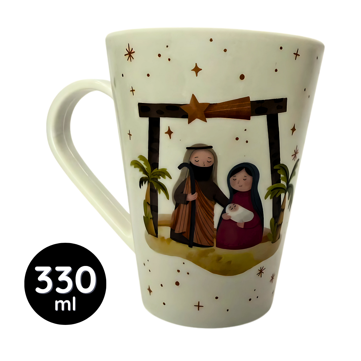 Celebre o verdadeiro espírito do Natal em cada gole com esta caneca especial de 330ml, decorada com a imagem da Sagrada Família. O design transmite paz, fé e aconchego, tornando-se perfeita para acompanhar cafés, chás ou chocolate quente durante as festas de fim de ano.