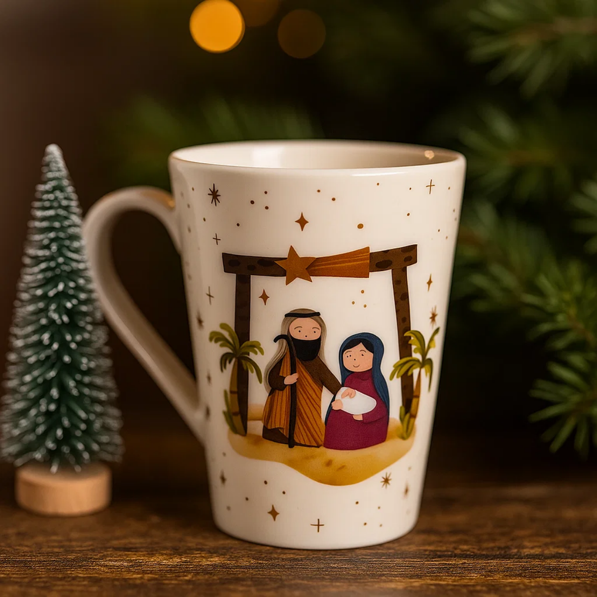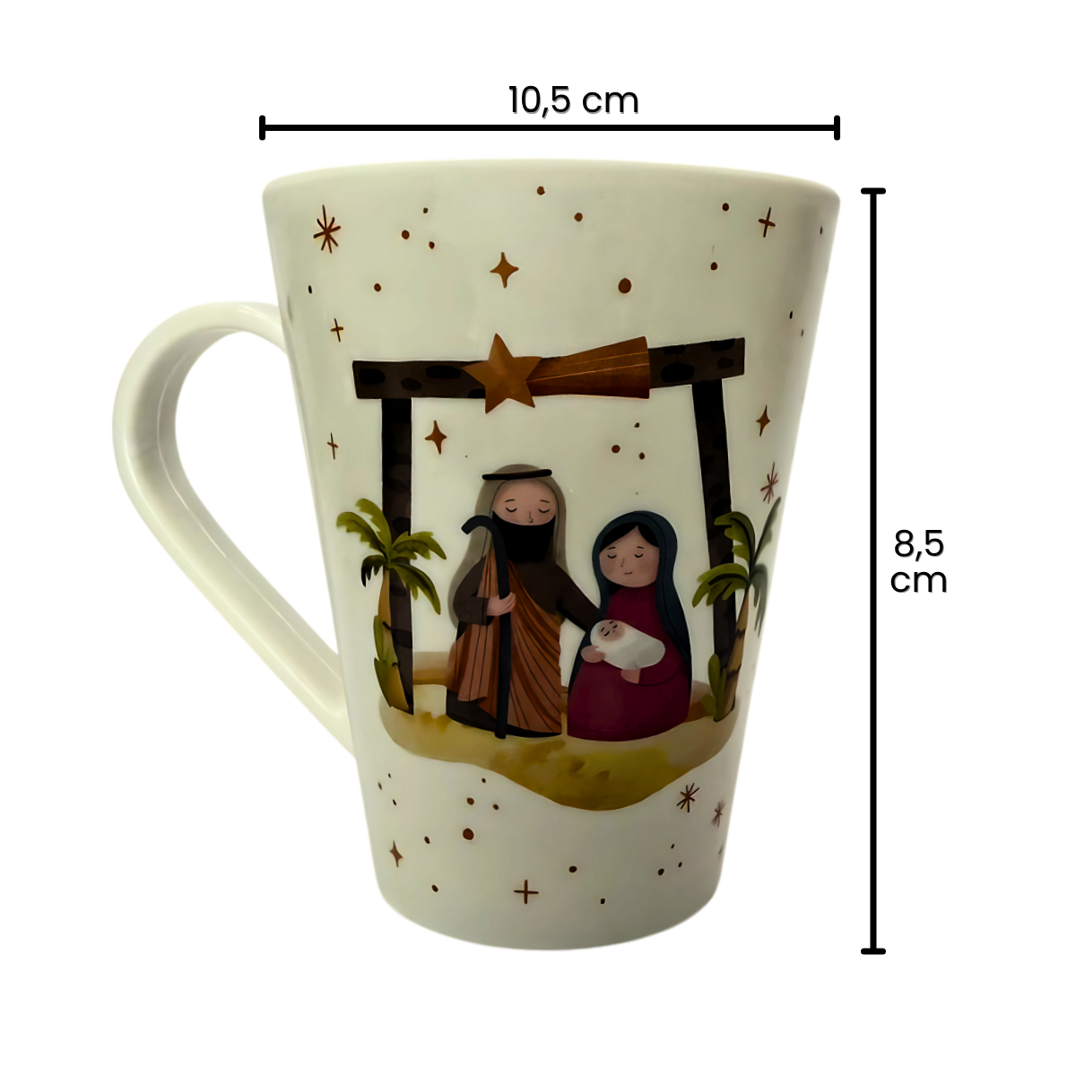 Decoração sofisticada: A caneca natalina da Sagrada Família é mais do que um utensílio: é um detalhe que reforça o sentido espiritual do Natal. Além de funcional, pode ser usada como peça decorativa ou lembrança especial para amigos e familiares.