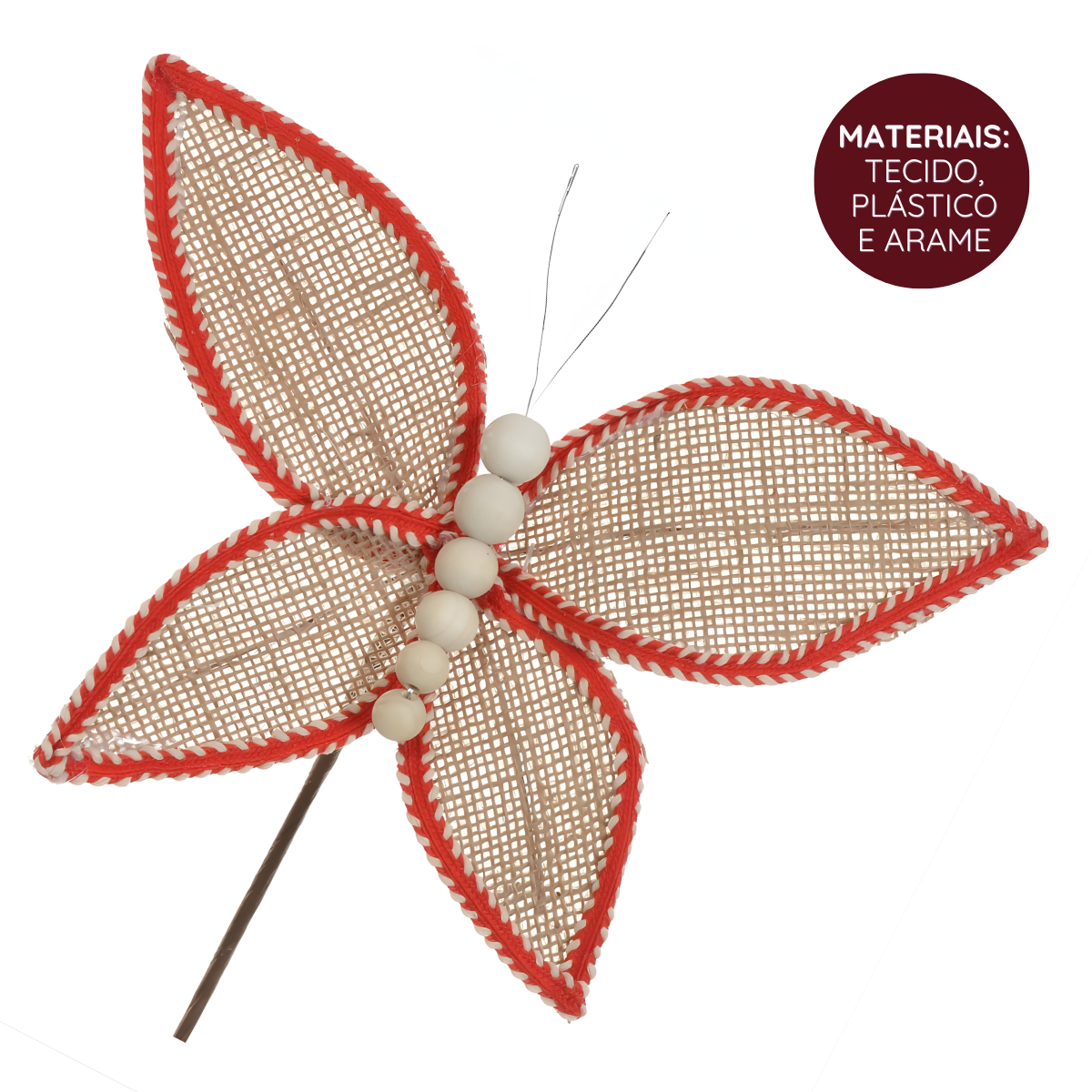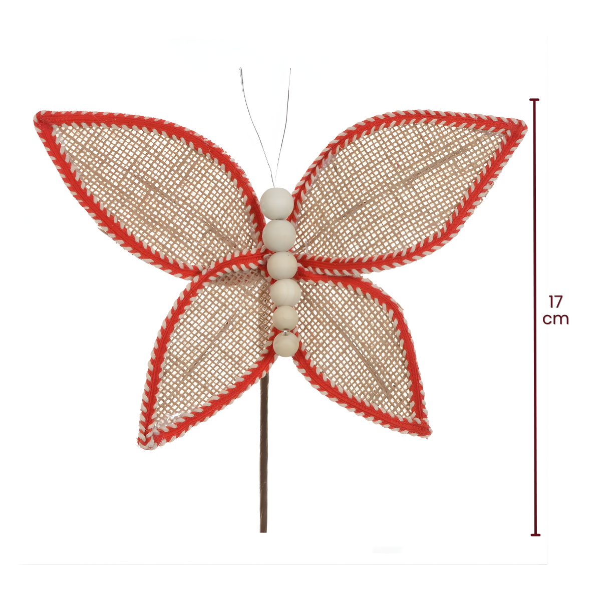 Borboleta Natalina Rústica Bege com Vermelho – 17cm