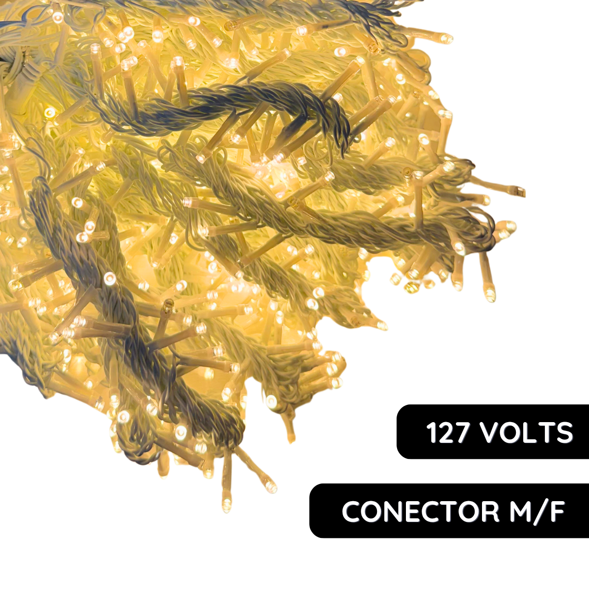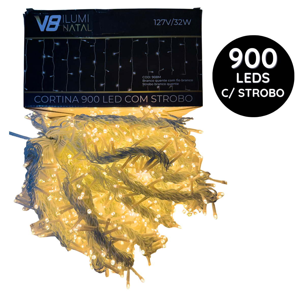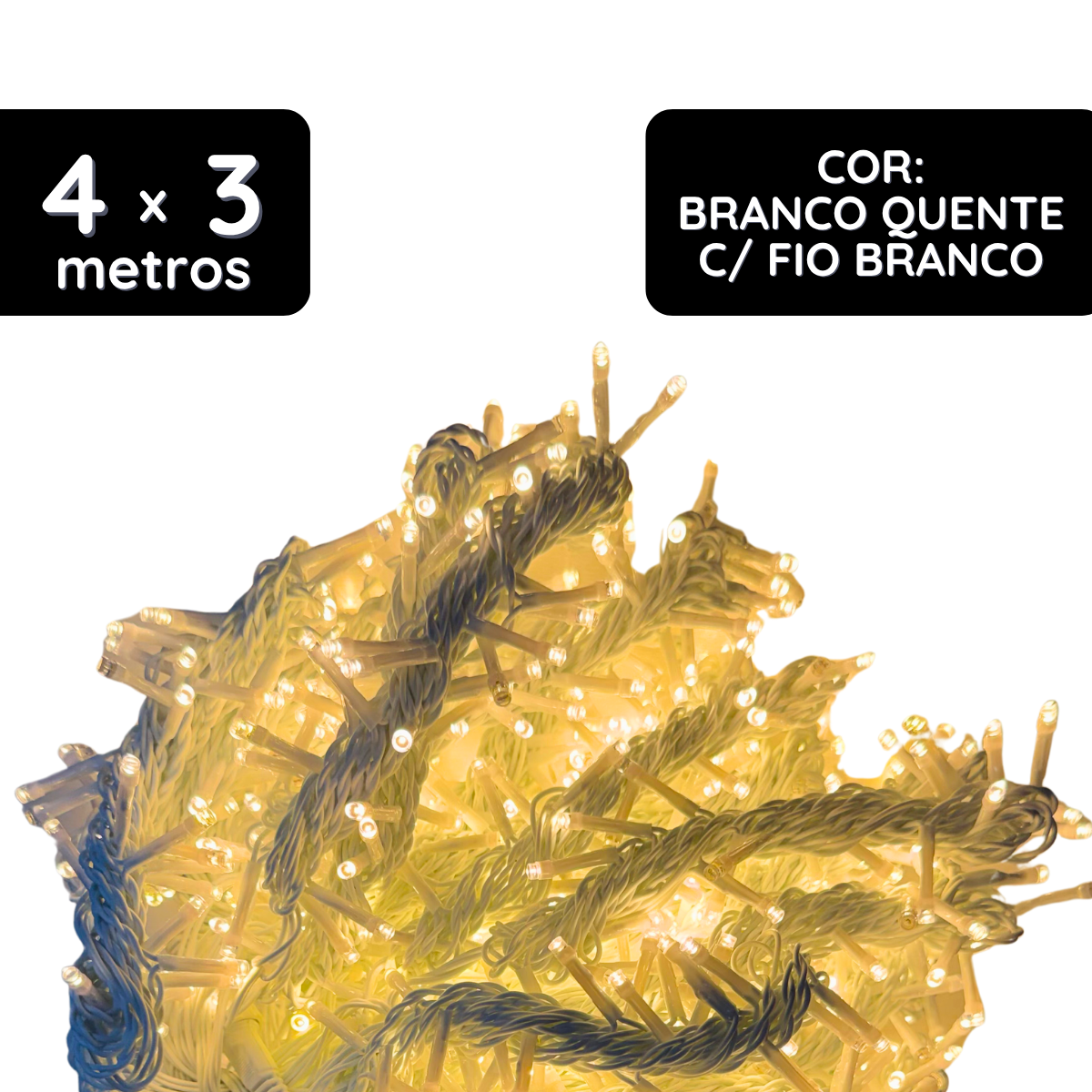 Cortina 900 LEDs com Strobo Branco Quente – Fio Branco 4x3m (127V)