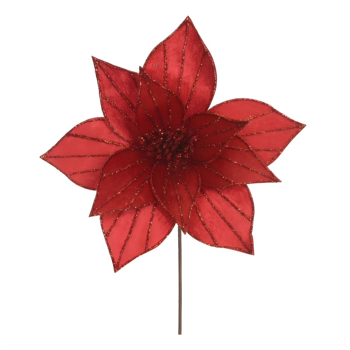 Flor de Natal Bico de Papagaio Vermelha com Glitter Vermelho – 20cm x 27cm