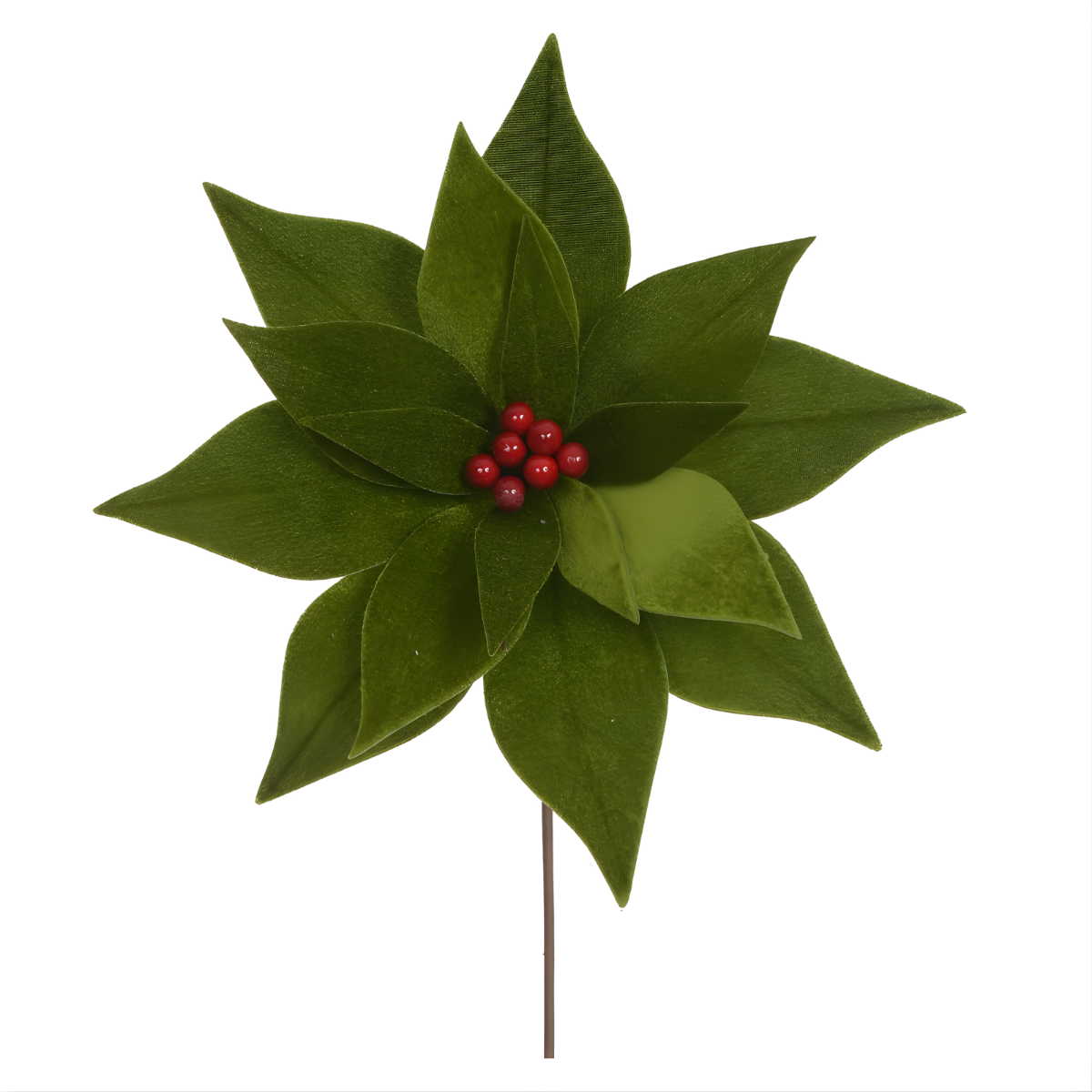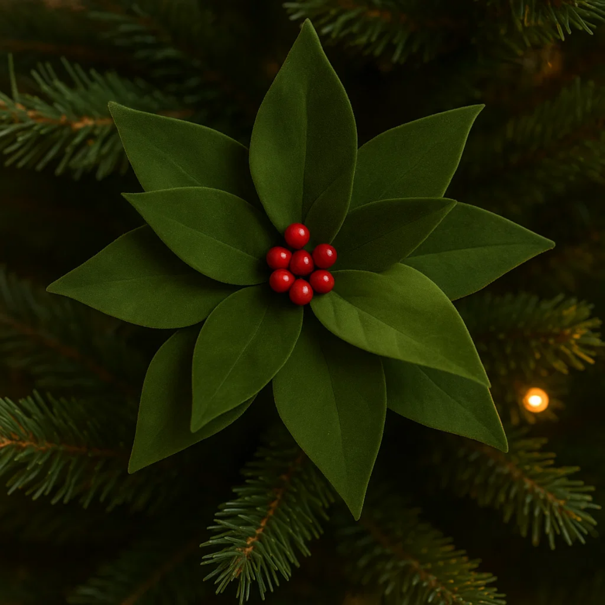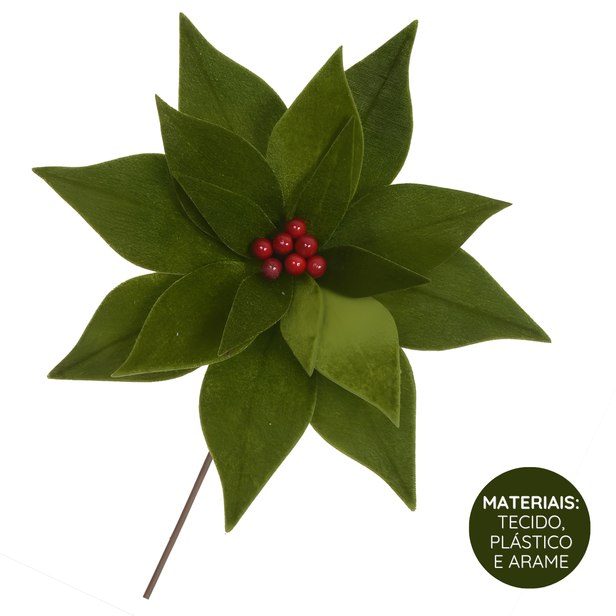 Flor Natal Bico de Papagaio Aveludada 25cm x 30cm – Verde com Frutinhas Vermelhas