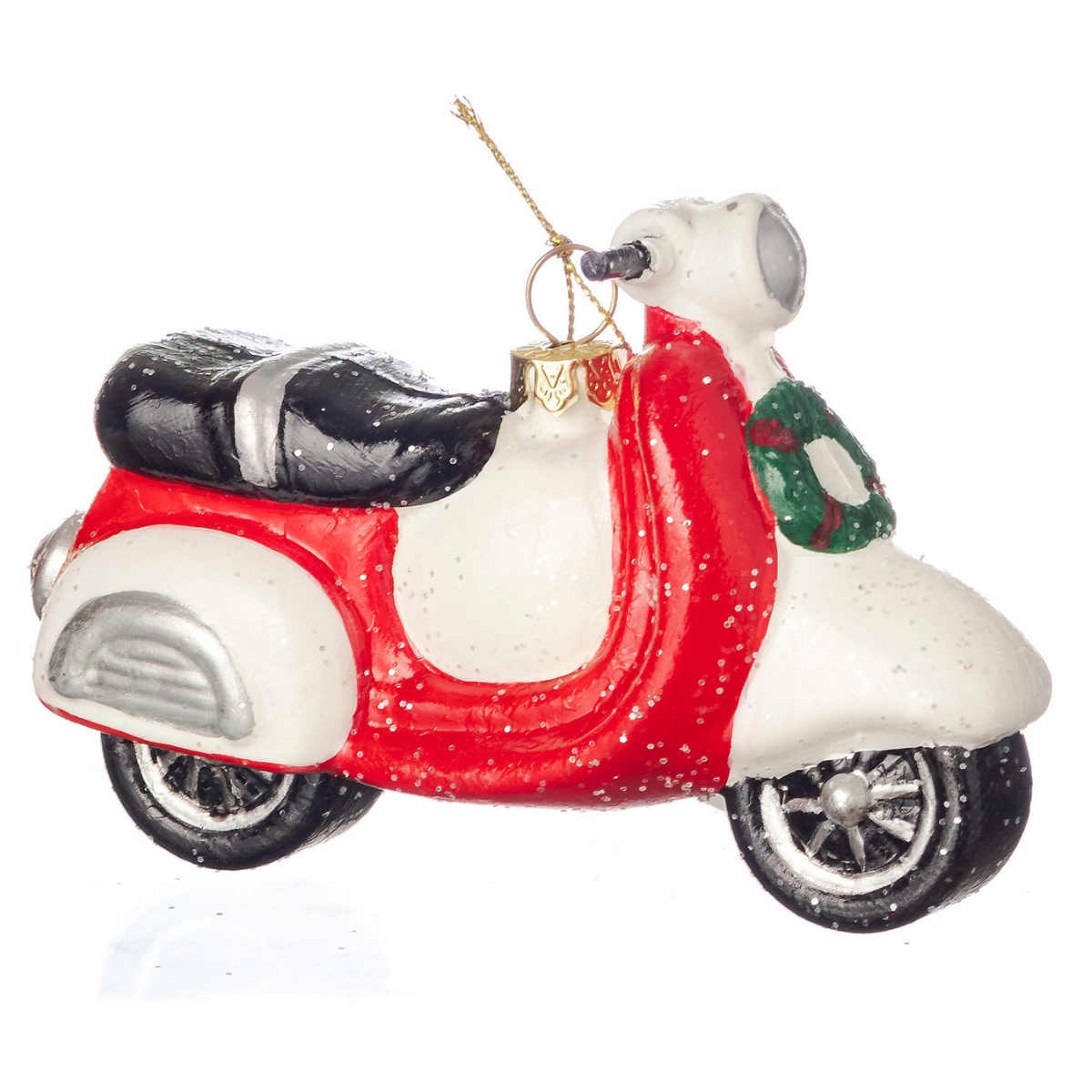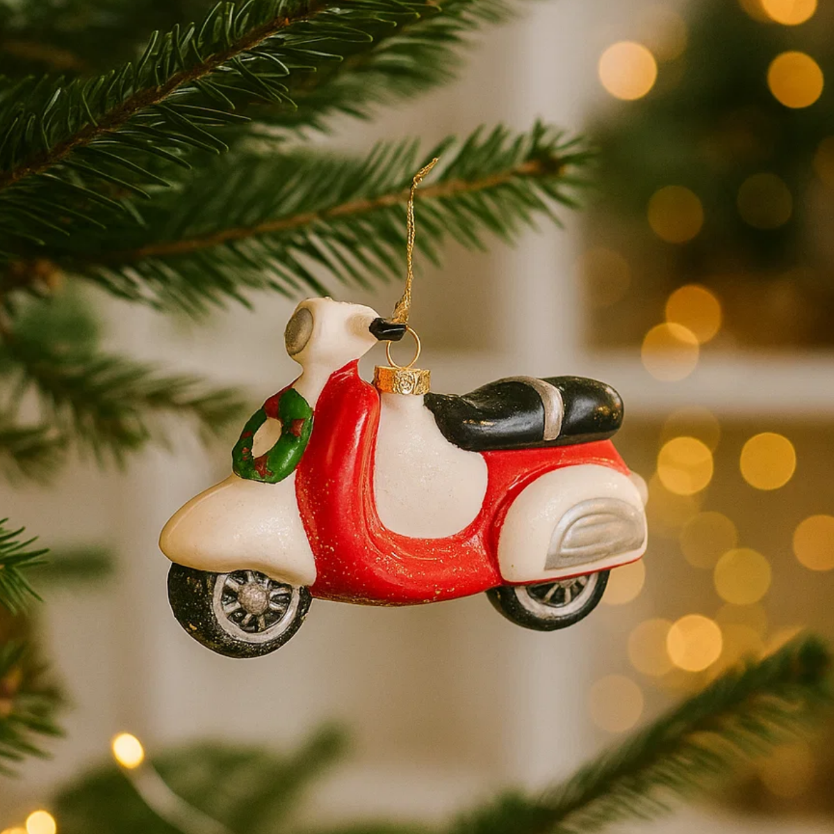 O Pendente Mobilete Natalina é o enfeite perfeito para quem adora um toque criativo e cheio de estilo na decoração! Com design retrô e pintura natalina, ele traz o charme das festas de fim de ano em um formato divertido e original.