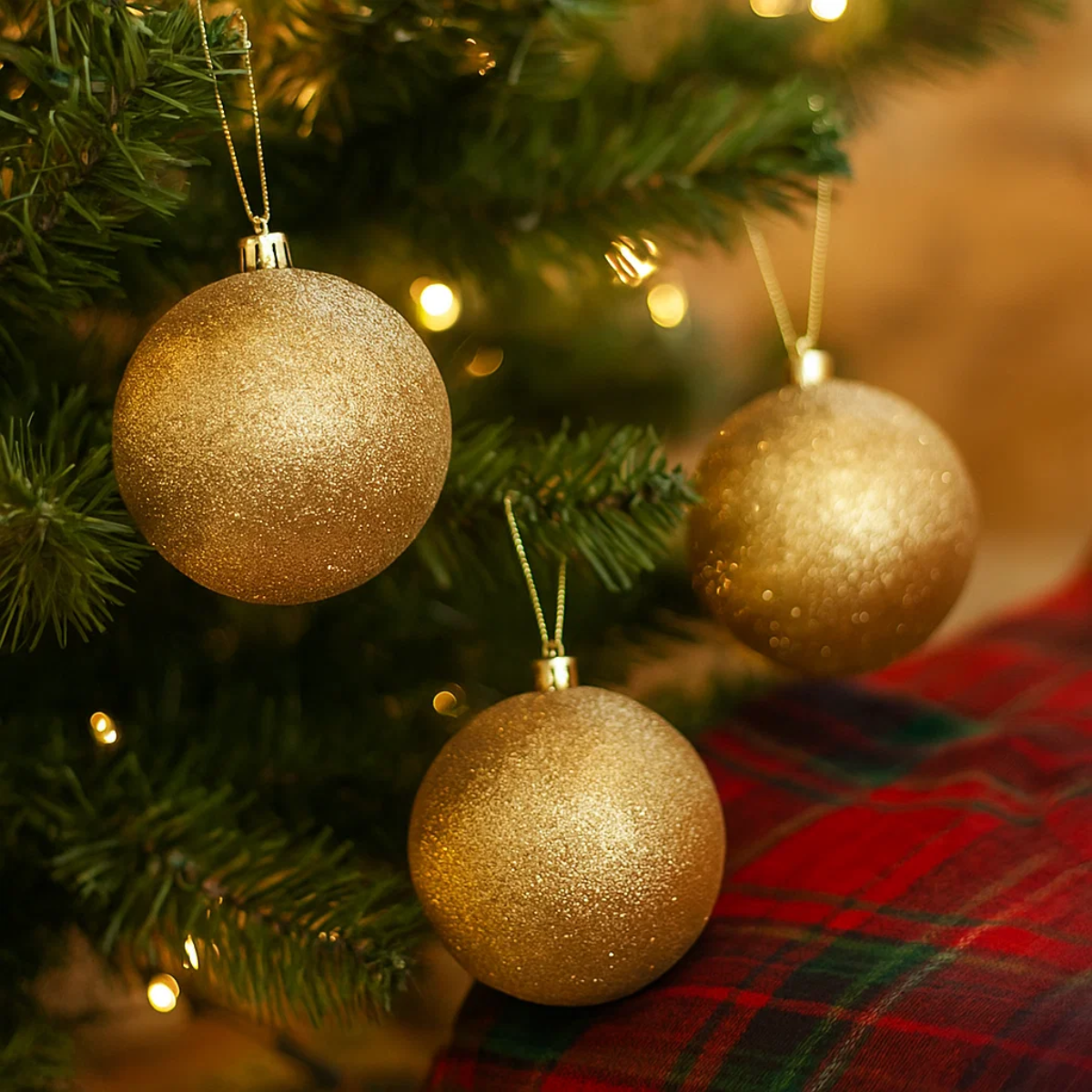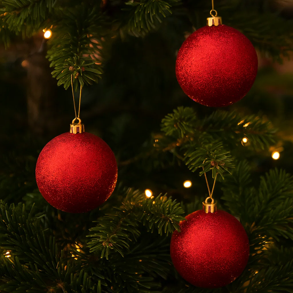 Kit 3 Bolas de Natal Decorativas com Glitter 12cm – Vermelhas ou Douradas