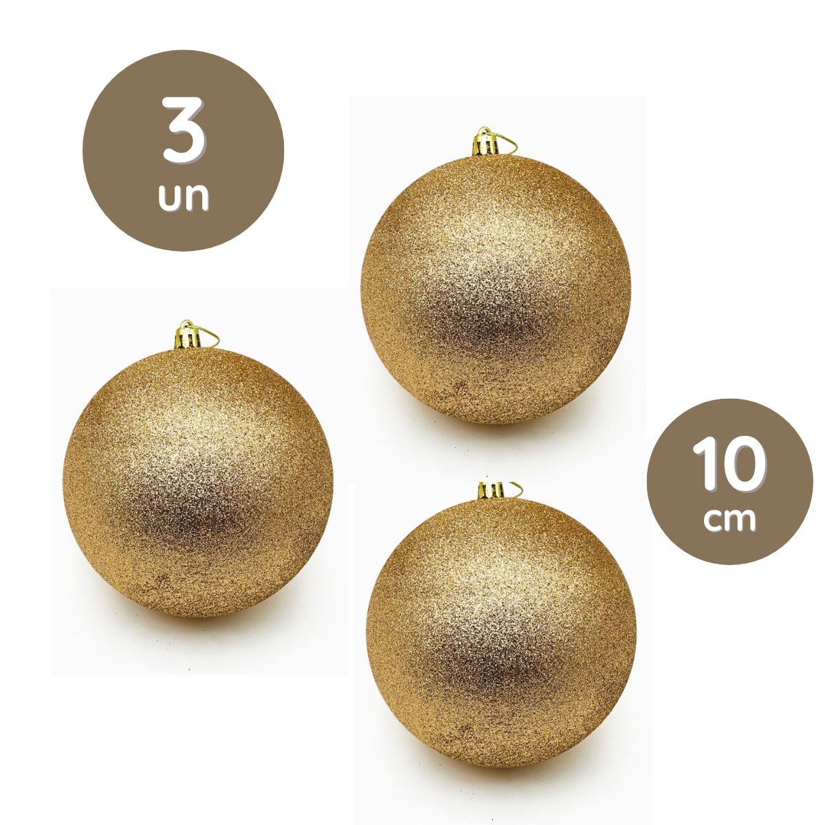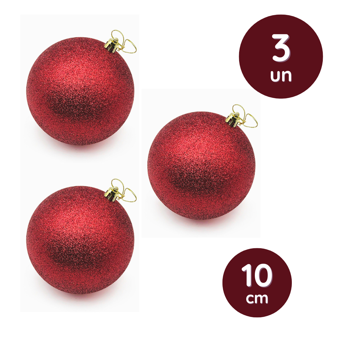 Kit com 3 Bolas de Natal Decorativas com Glitter 10cm - Vermelho ou Dourado