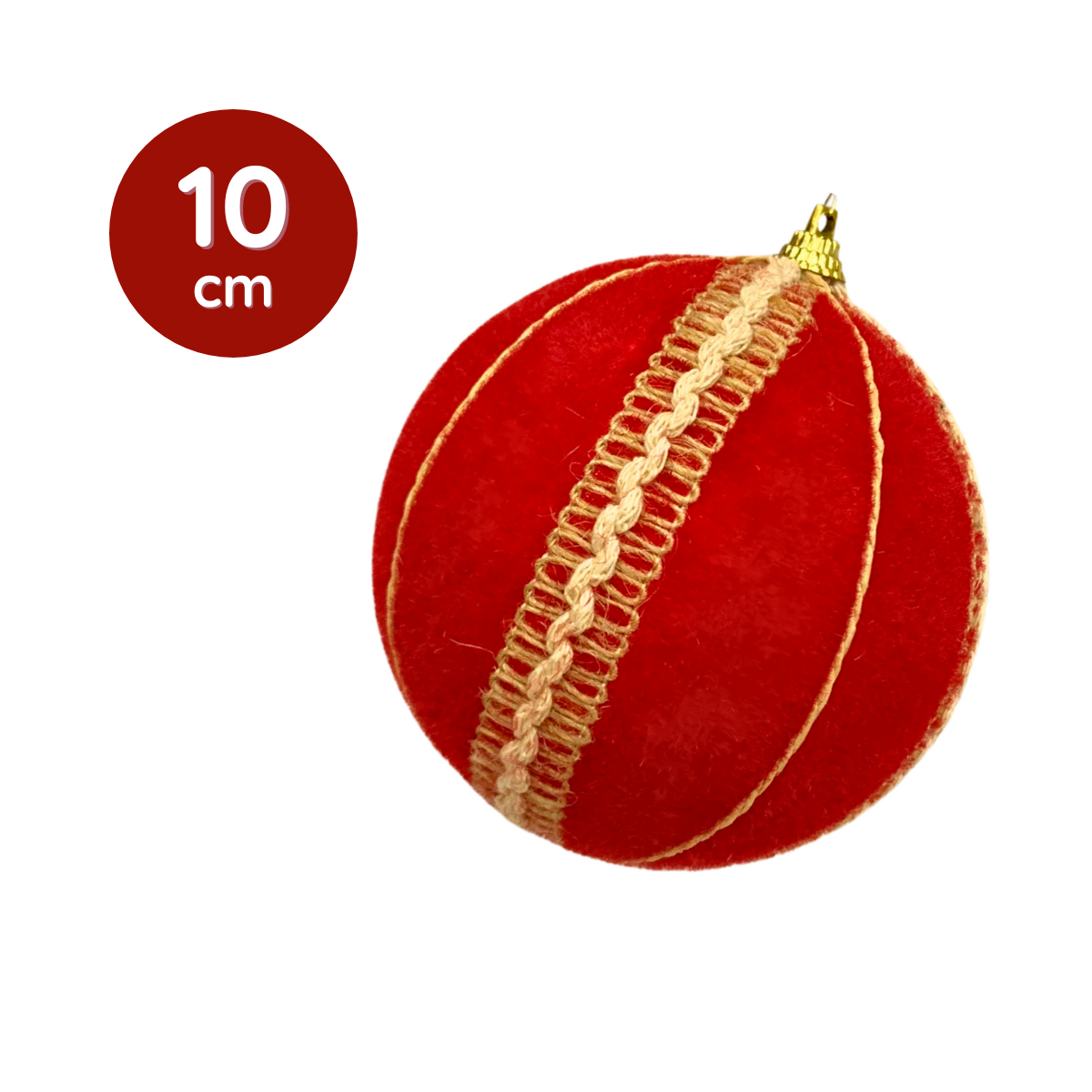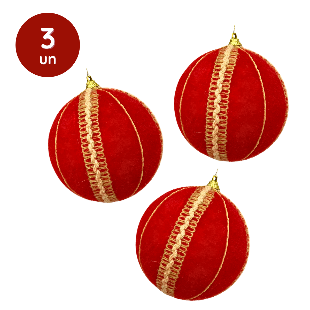 Kit 3 Bolas Natalinas 10cm – Bordada Vermelha com Dourado