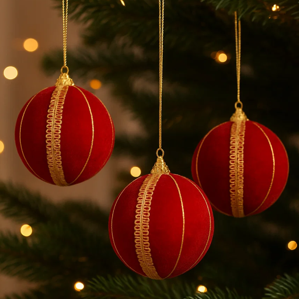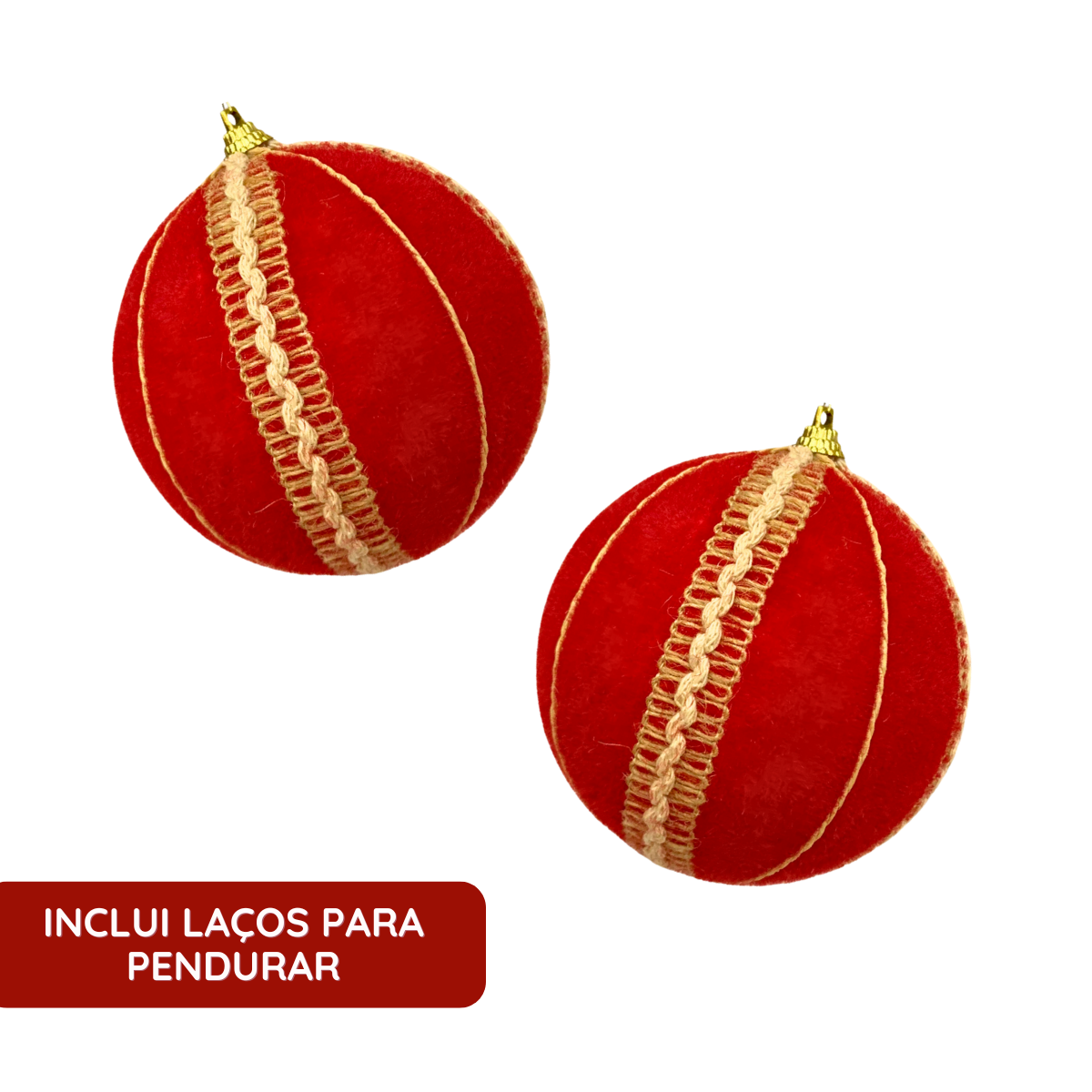 Tradicional e elegante, o Kit de Bolas Bordadas Vermelhas é perfeito para quem ama uma decoração natalina com toque clássico e sofisticado. Com acabamento em veludo vermelho e fitas douradas bordadas, essas bolas trazem brilho e requinte à sua árvore de Natal.