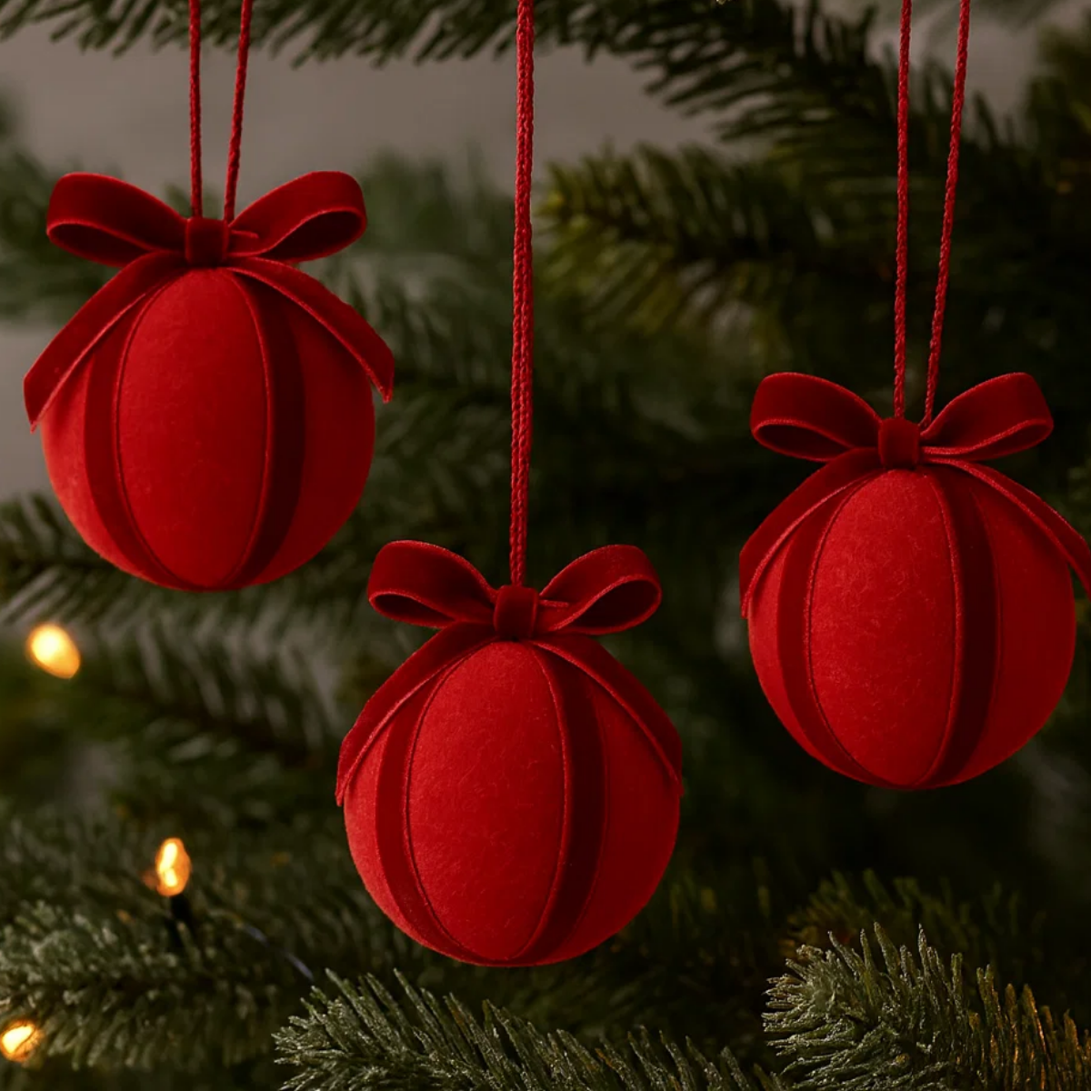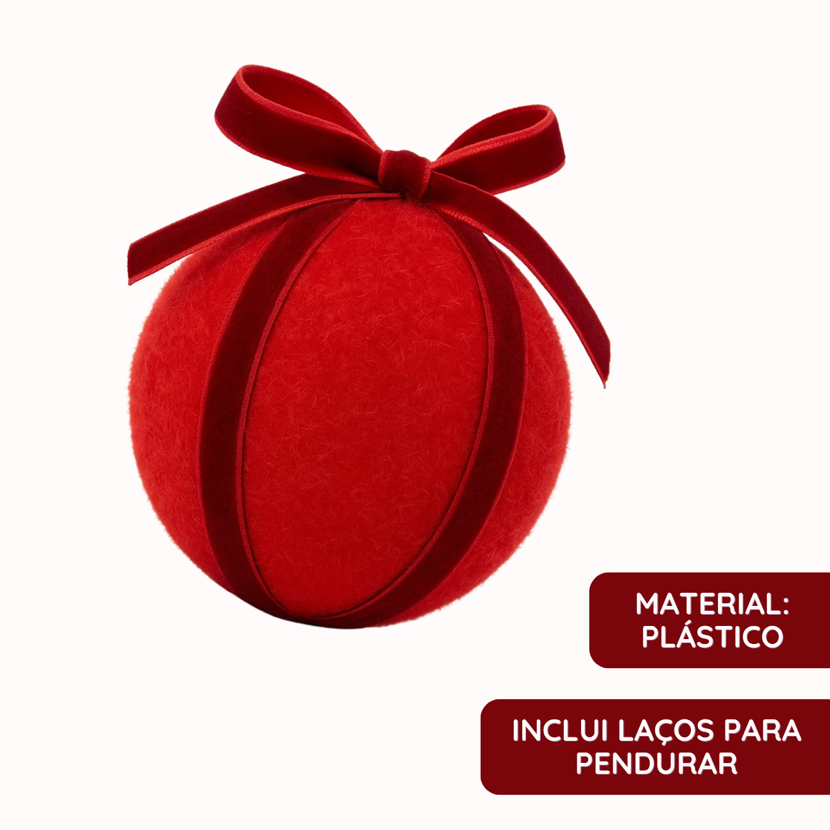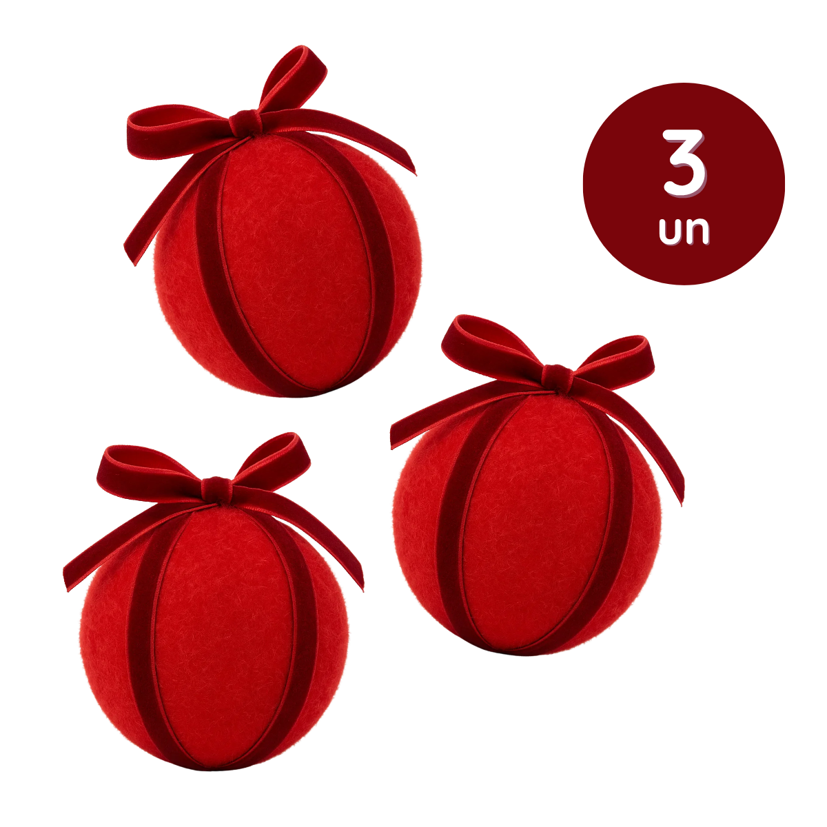 Kit 3 Bolas Natalinas 8cm – Veludo Vermelho com Laço