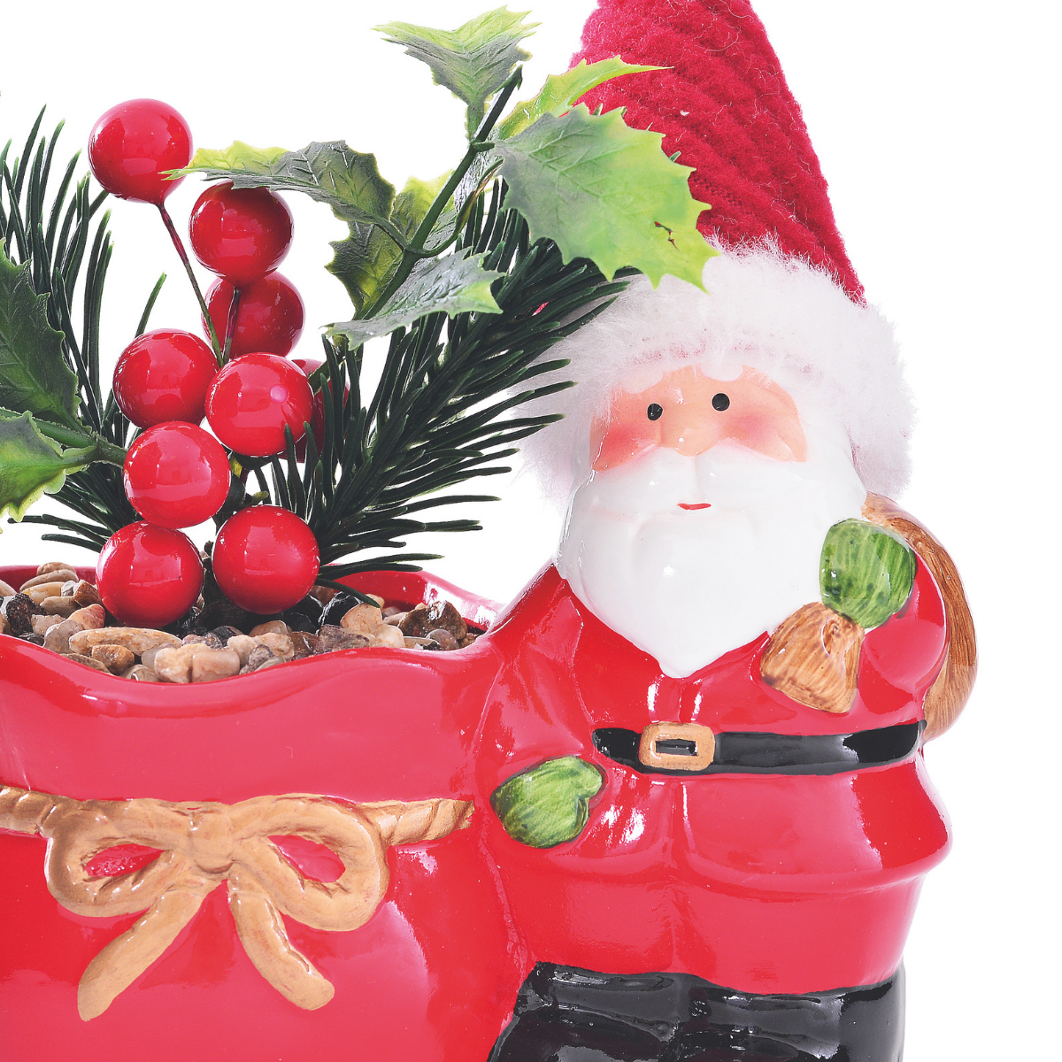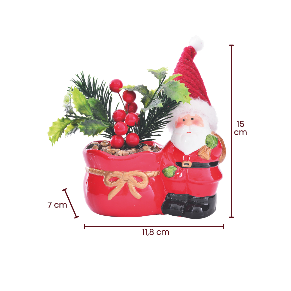 Cachepot Papai Noel com Suculenta Decorativa – 15x11,8cm (Vermelho)