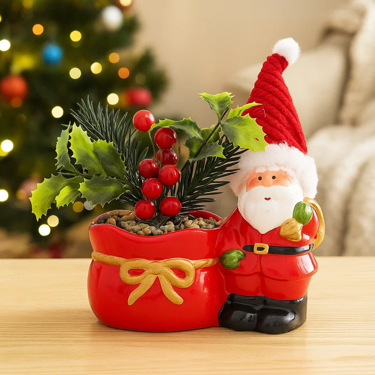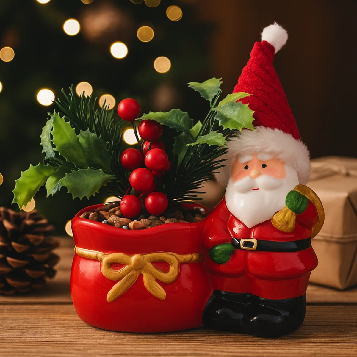Encante sua decoração natalina com o Cachepot Noel com Suculenta, uma peça charmosa que une o clima festivo do Natal à delicadeza das plantas decorativas. Ideal para trazer alegria e cor a mesas, aparadores e cantinhos especiais da casa!