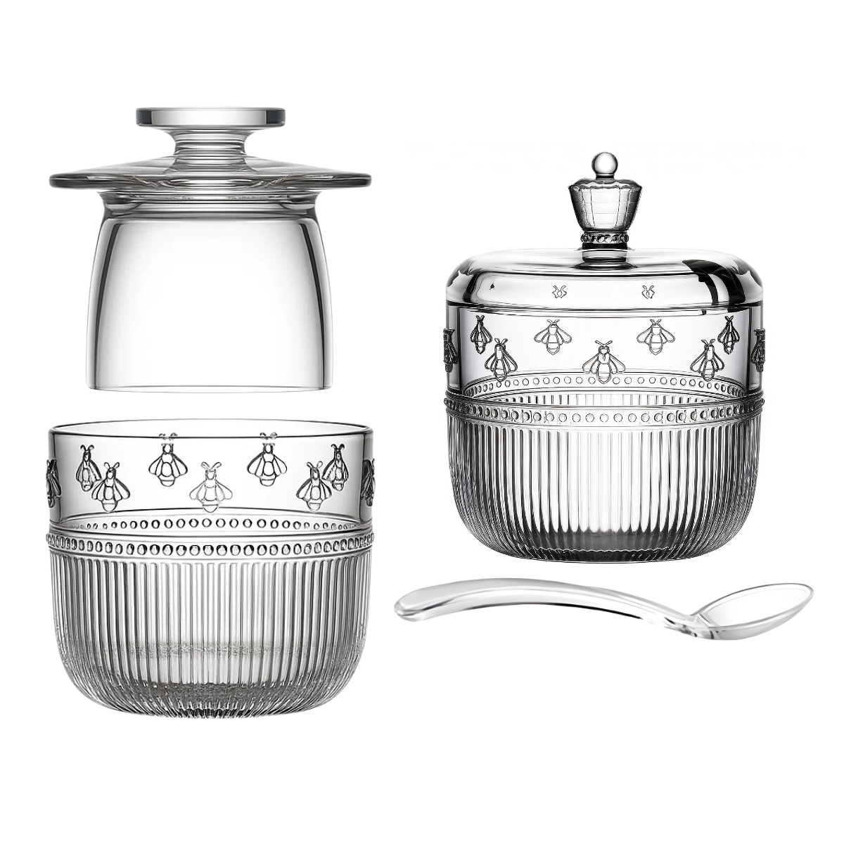 Kit Pequenos Voadores – Açucareiro 360ml + Manteigueira Francesa 160ml em cristal ecológico