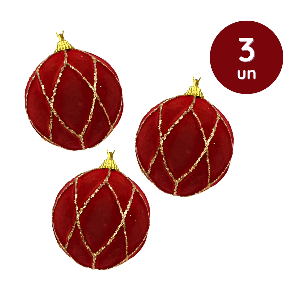 Kit 3 Bolas Natalinas 8cm - Vinho com Detalhes Dourados